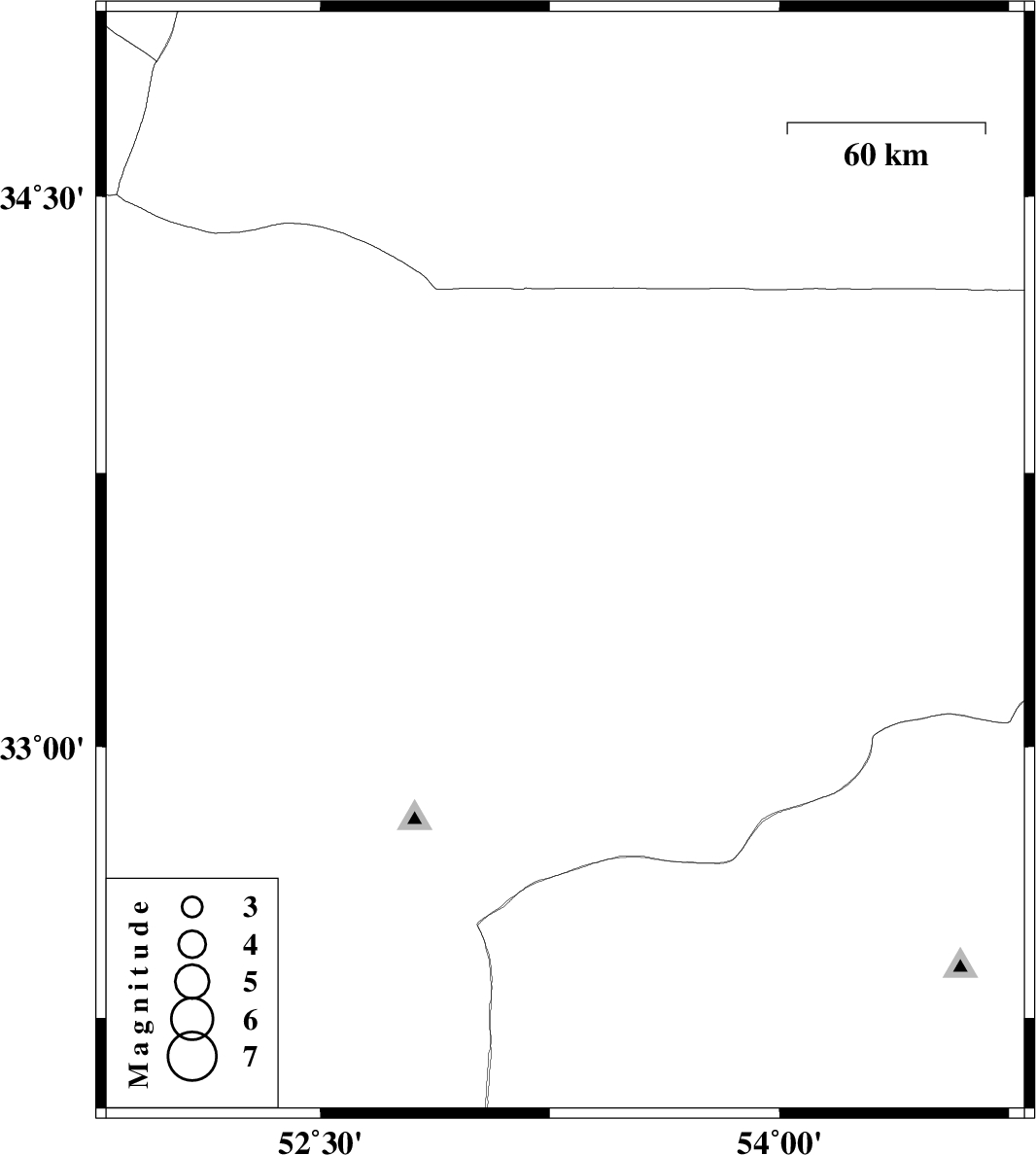 | 2010/07/25 | 05:37:52.6 | 10:07:52.6 | 33.5 | 53.3 | 14 | ML:3.4 | Esfahan Province, 73 km North-East of Nain |