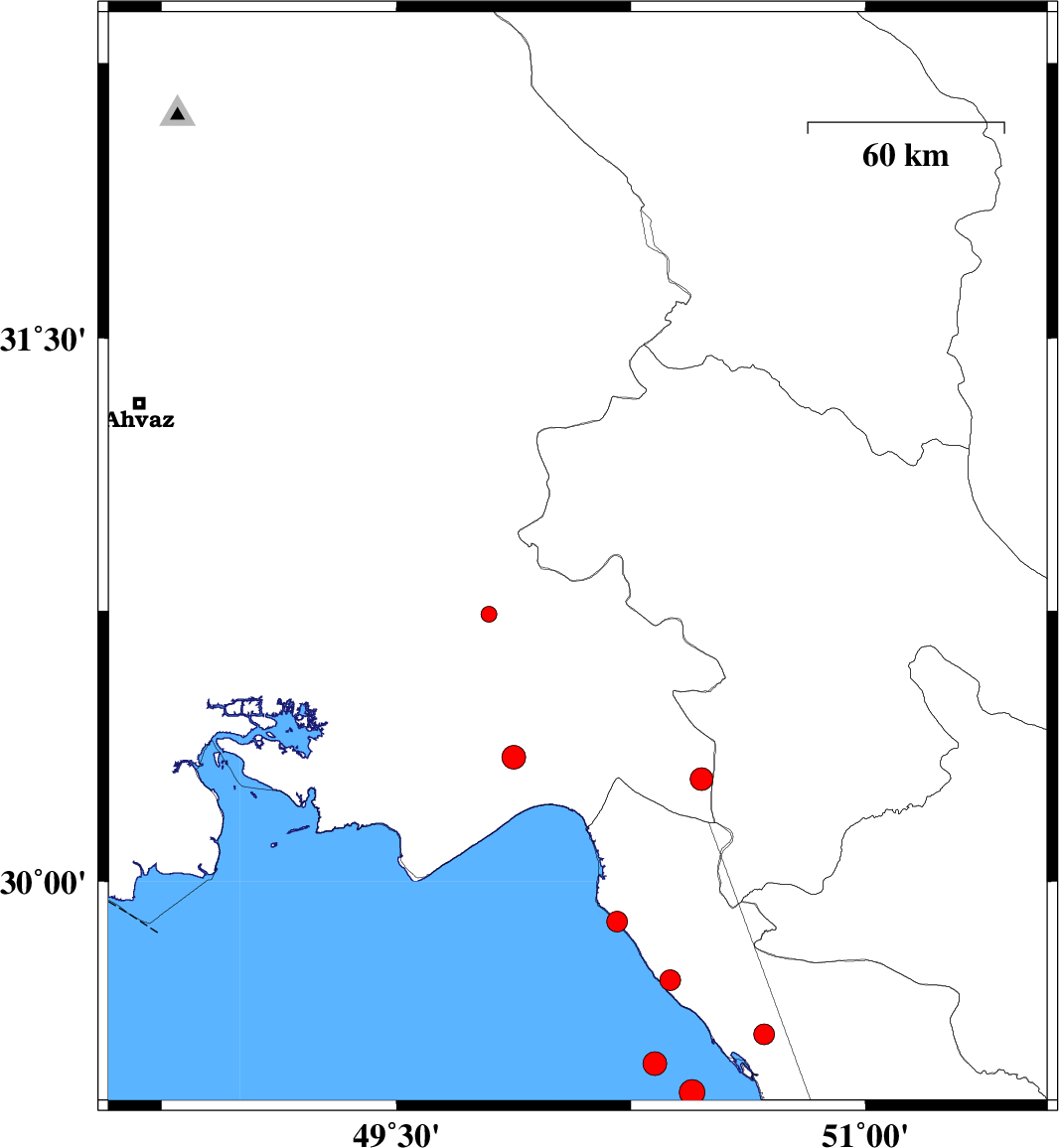 | 2010/07/13 | 04:55:57.4 | 09:25:57.4 | 32.2 | 49.43 | 14 | ML:2.3 | Khoozestan Province, 31 km North-East of Masjed Soleyman | ||