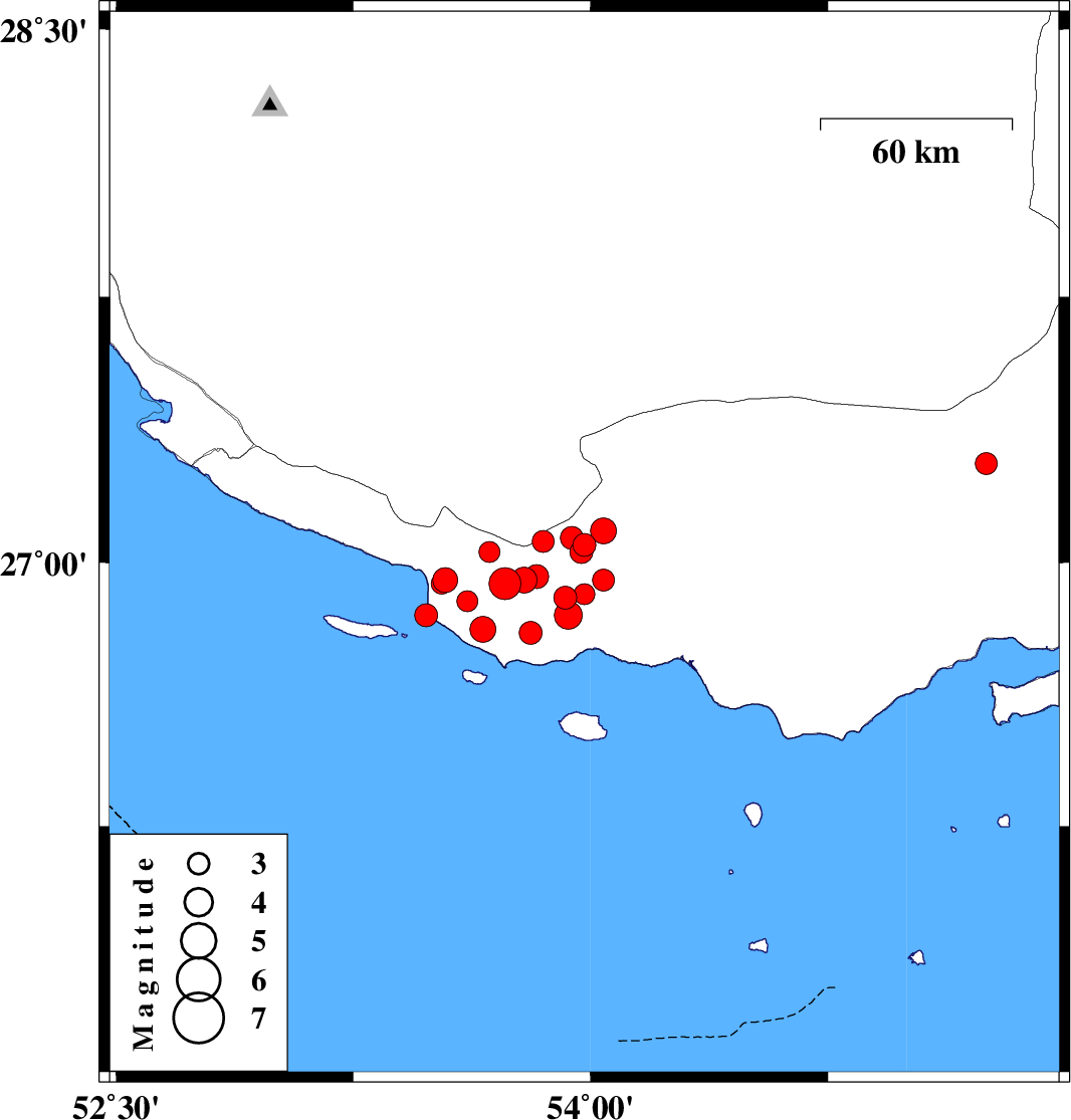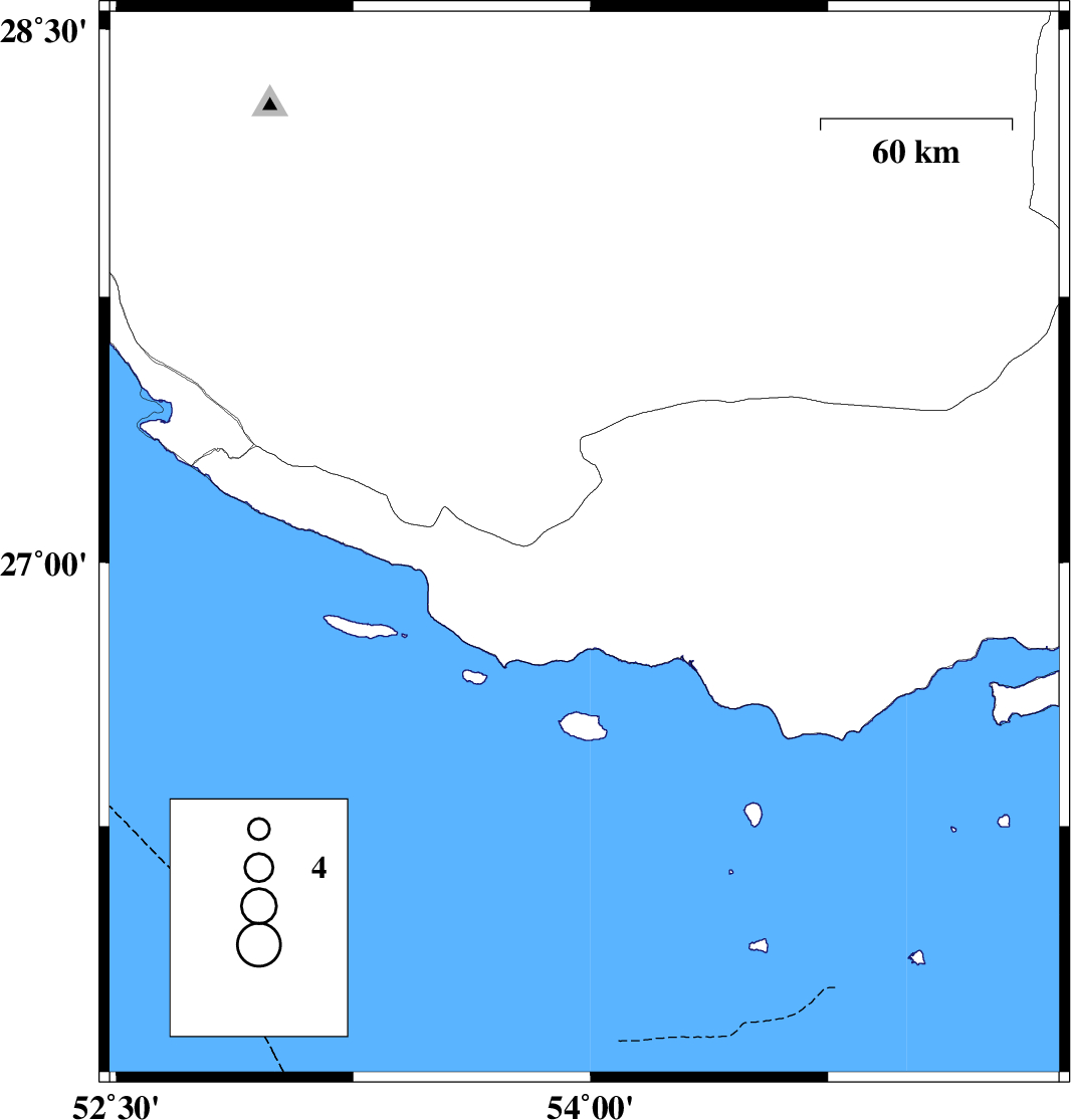 Persian Gulf, 62 km South-East of Lamerd | |