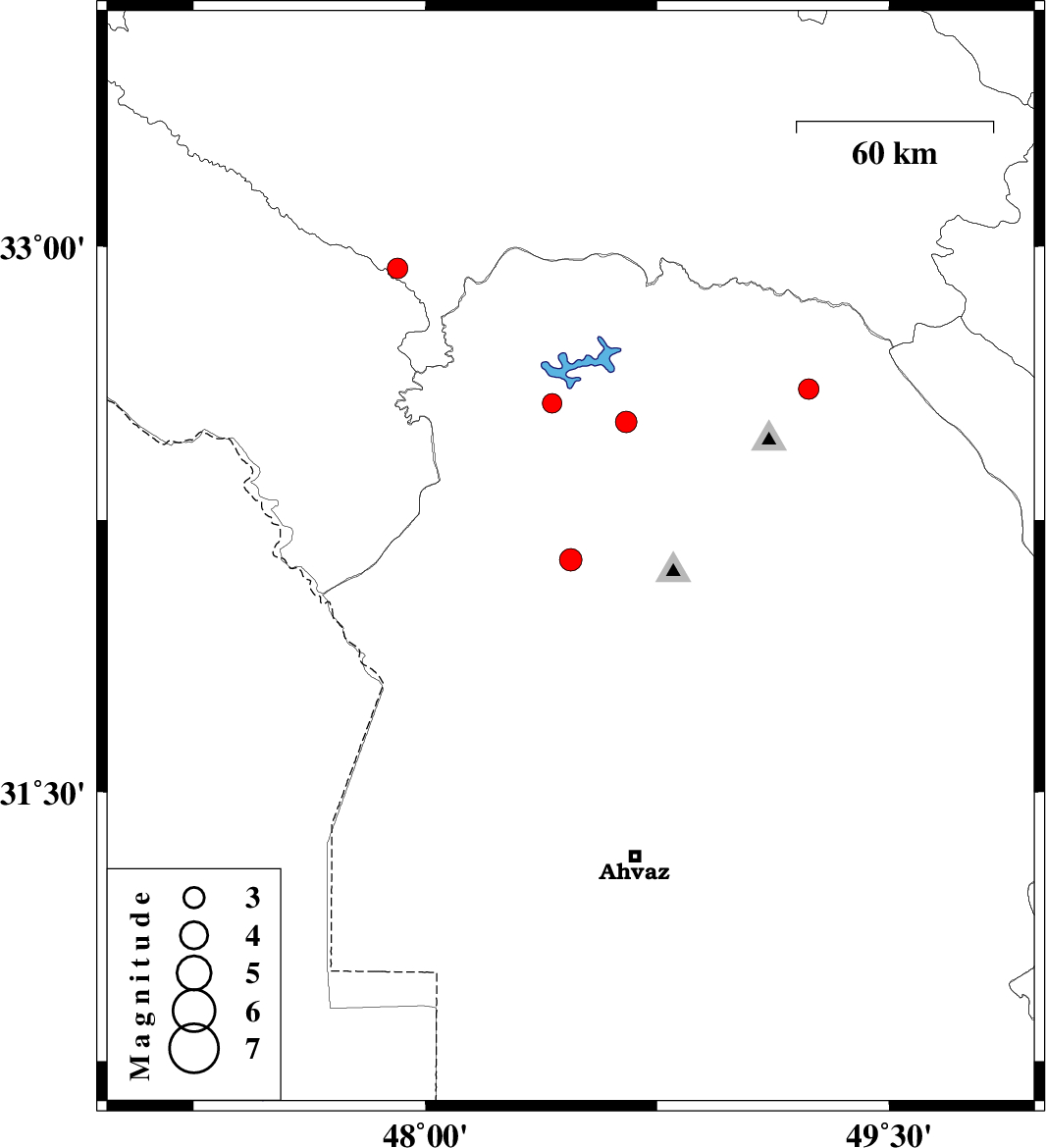 | 2010/07/30 | 02:36:27.7 | 07:06:27.7 | 32.14 | 48.47 | 15 | ML:3.3 | Khoozestan Province, 22 km East of Shush | ||