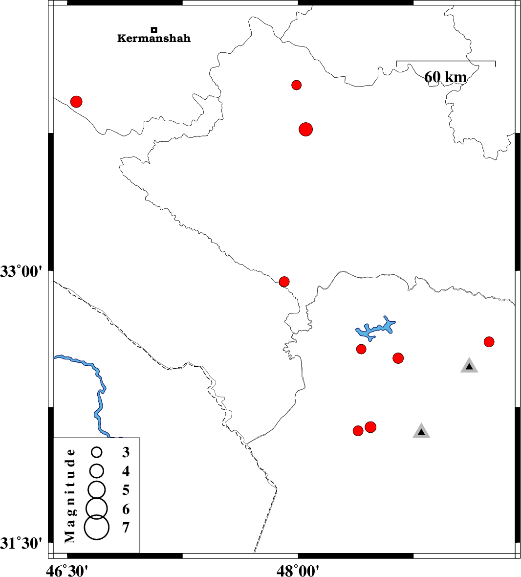 | 2010/07/30 | 17:16:24.8 | 21:46:24.8 | 32.94 | 47.91 | 46 | ML:2.9 | Lorestan Province, 30 km South-East of Pol-e dokhtar | ||
