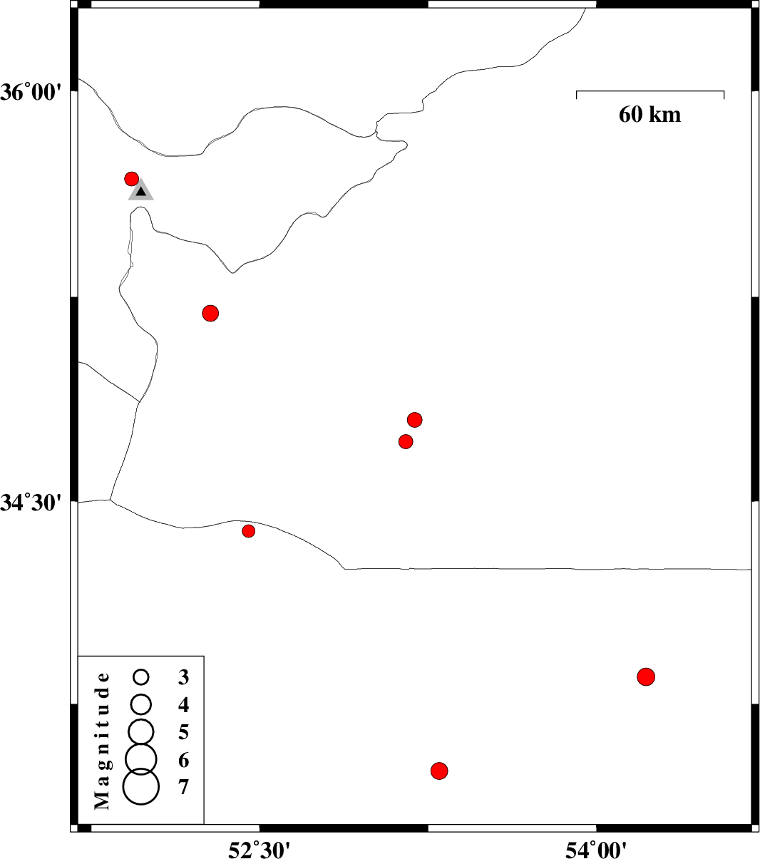 | 2010/07/15 | 21:07:57.4 | 01:37:57.4 | 34.39 | 52.45 | 14 | ML:2.5 | Esfahan Province, 92 km South-East of Garmsar |