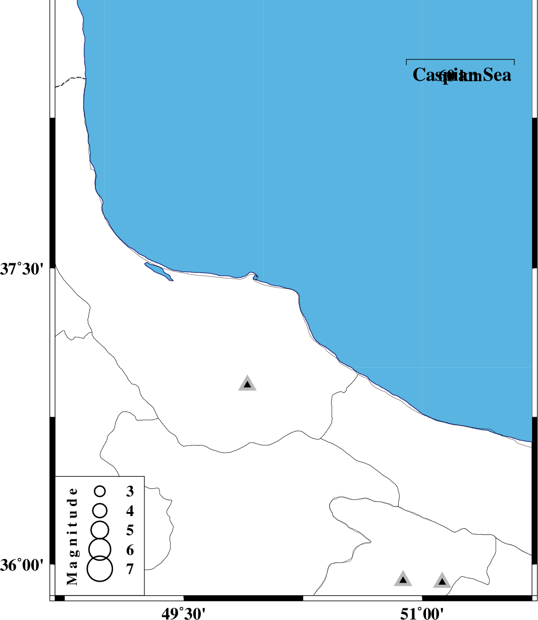 | 2010/08/06 | 09:14:18.9 | 13:44:18.9 | 37.34 | 50.19 | 14 | ML:3.4 | Gilan Province, 16 km North of Langarud |