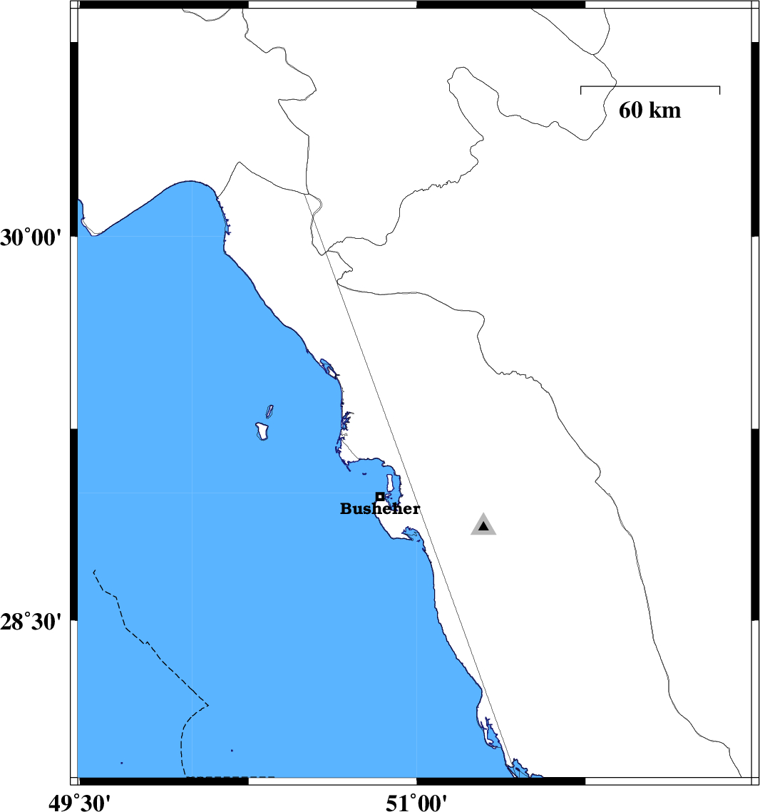 | 2010/08/06 | 19:24:56.5 | 23:54:56.5 | 29.3 | 51.02 | 34 | ML:3 | Bushehr Province, 18 km West of Borazjan | ||