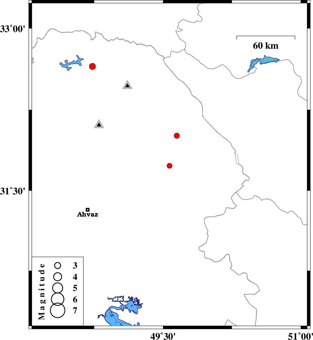 | 2010/08/04 | 23:34:56.5 | 04:04:56.5 | 32.65 | 48.73 | 14 | ML:3.1 | Khoozestan Province, 41 km North-East of Andimeshk |