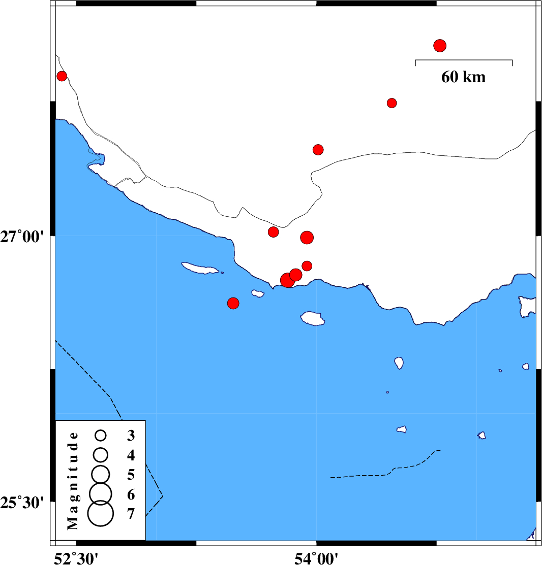 Persian Gulf, 86 km South-East of Lamerd | |