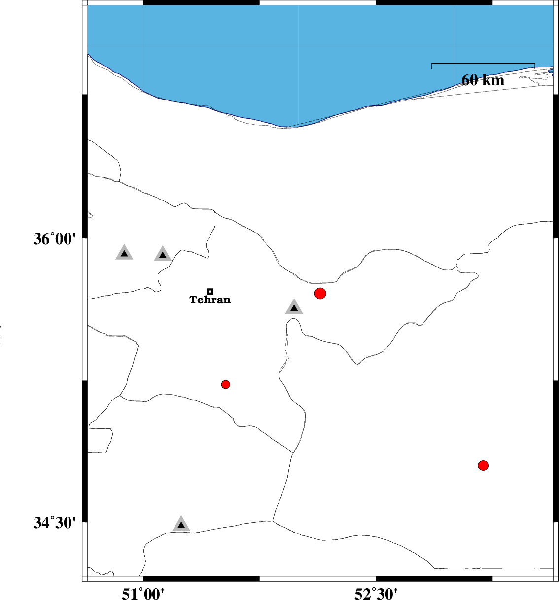 | 2010/08/03 | 11:41:18.1 | 16:11:18.1 | 35.23 | 51.53 | 41 | ML:2.4 | Tehran Province, 17 km West of Varamin | ||