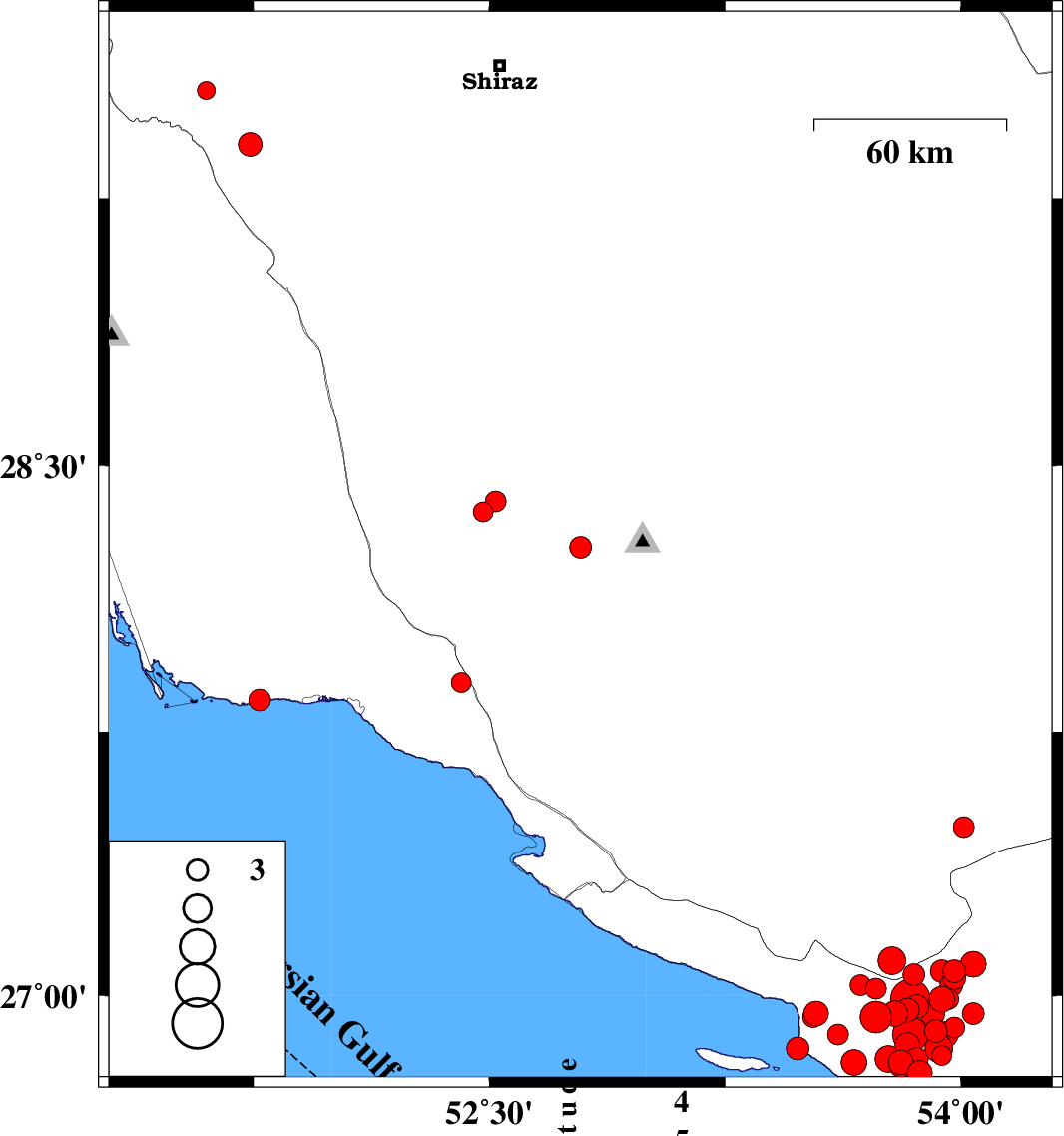 Persian Gulf, 62 km South-East of Lamerd | |