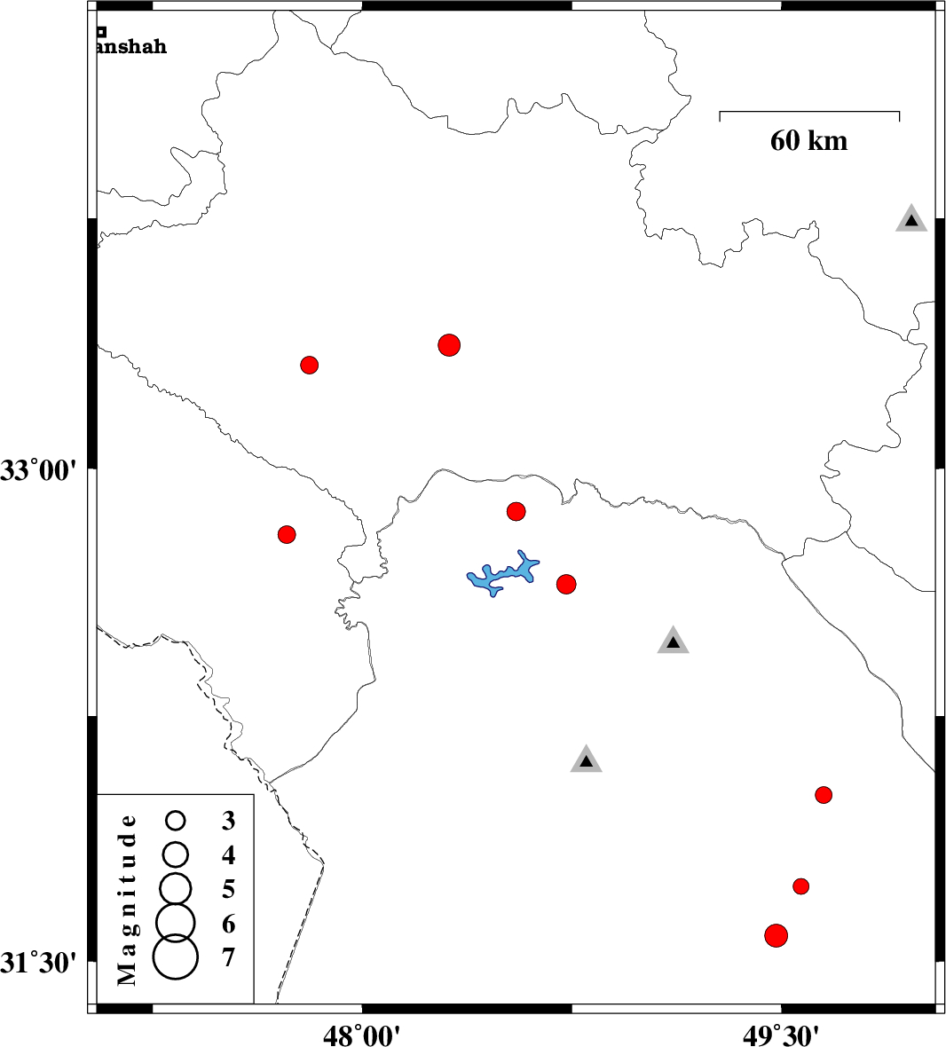 | 2010/08/04 | 06:49:25.2 | 11:19:25.2 | 32.8 | 47.73 | 18 | ML:2.8 | Ilam Province, 39 km South of Pol-e dokhtar |