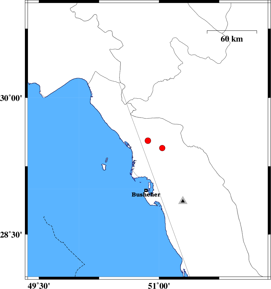 | 2010/08/15 | 01:48:48.7 | 06:18:48.7 | 29.45 | 51.04 | 18 | ML:3.2 | Bushehr Province, 26 km North-West of Borazjan |