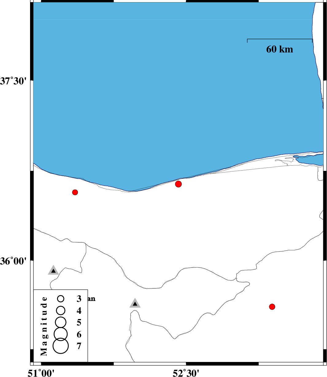 | 2010/08/13 | 04:09:35.2 | 08:39:35.2 | 36.57 | 51.35 | 14 | ML:2.6 | Mazandaran Province, 11 km Chalus | ||