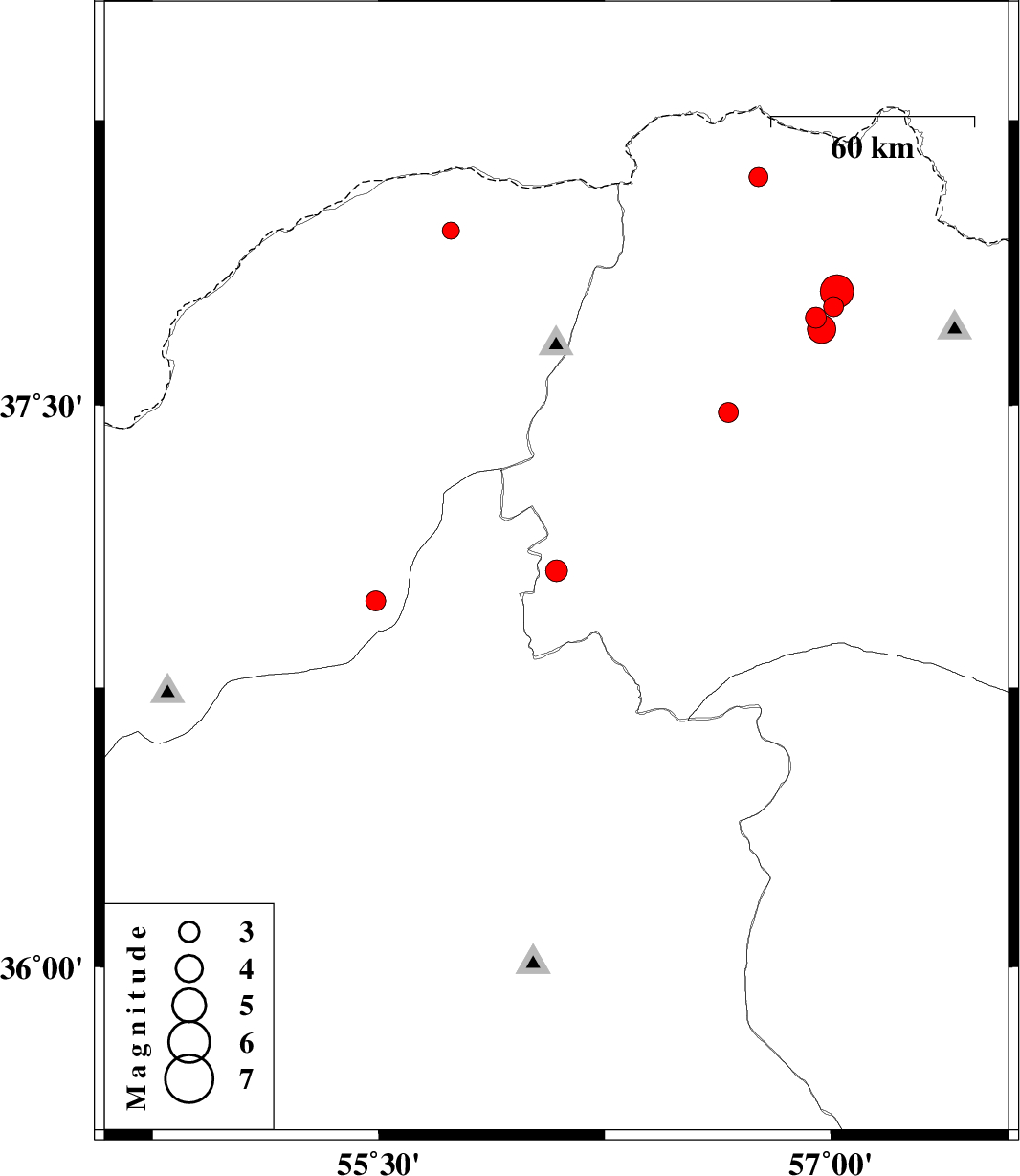 | 2010/07/28 | 22:10:51.8 | 02:40:51.8 | 37.96 | 55.74 | 12 | ML:2.6 | Golestan Province, 68 km North-East of Kalaleh | ||