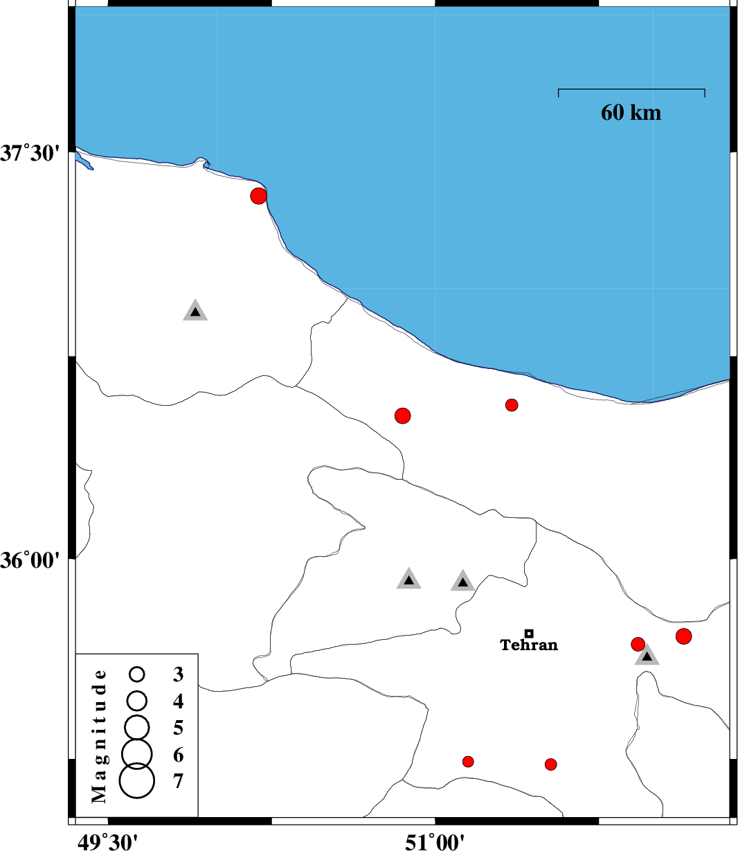 | 2010/08/20 | 03:11:55.8 | 07:41:55.8 | 36.53 | 50.85 | 35 | ML:3.2 | Mazandaran Province, 32 km South of Tonekabon | ||