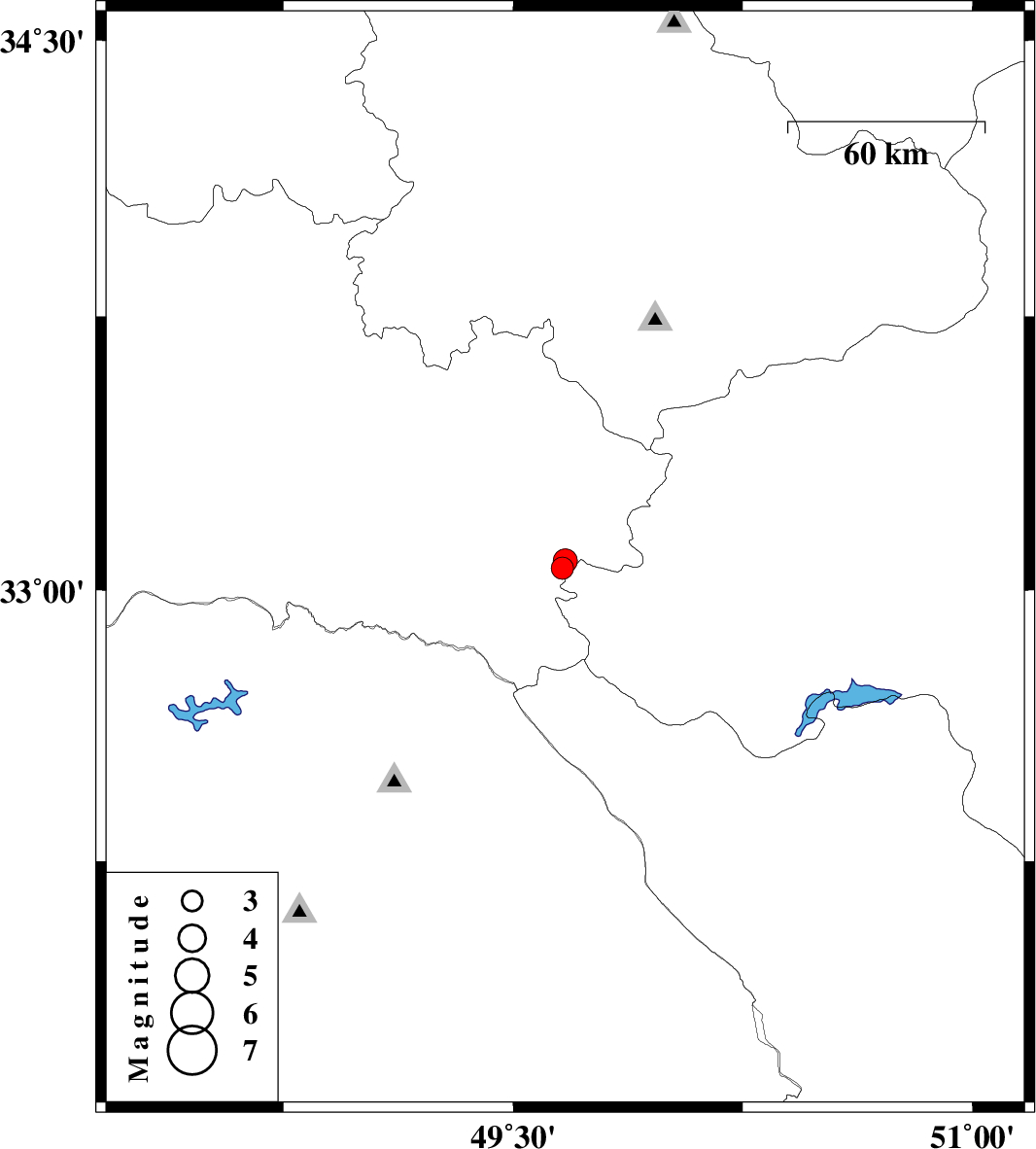 | 2010/08/20 | 11:13:05.3 | 15:43:05.3 | 33.06 | 49.66 | 15 | ML:3.3 | Lorestan Province, 39 km South of Aligudarz | ||