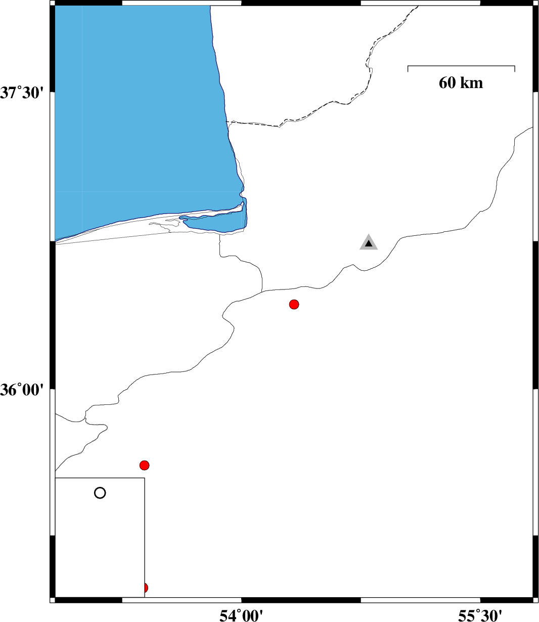 | 2010/08/20 | 21:01:14.2 | 01:31:14.2 | 36.43 | 54.33 | 15 | ML:2.7 | Semnan Province, 30 km North of Damghan | ||