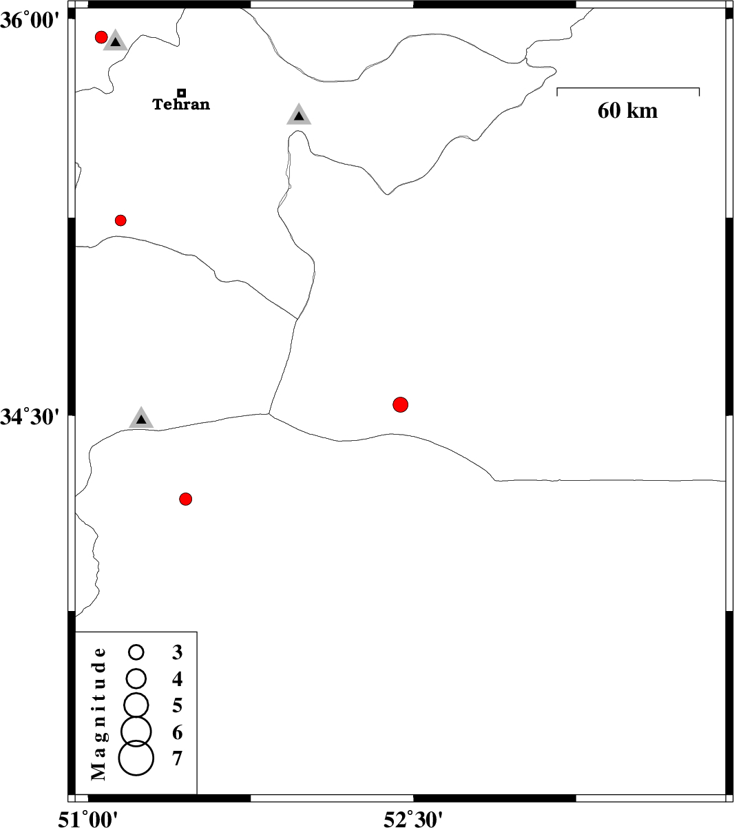| 2010/08/23 | 01:33:15.8 | 06:03:15.8 | 34.54 | 52.44 | 44 | ML:3.1 | Semnan Province, 76 km South-East of Garmsar | ||