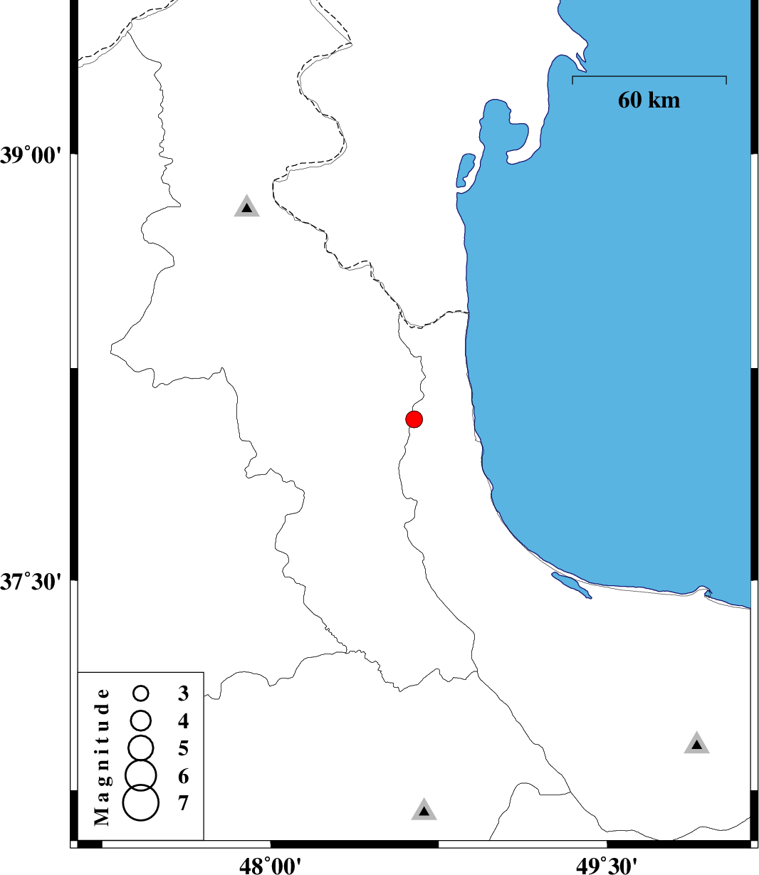 | 2010/08/23 | 21:22:54.4 | 01:52:54.4 | 38.07 | 48.64 | 6 | ML:3.4 | Gilan Province, 44 km East of Nir | ||