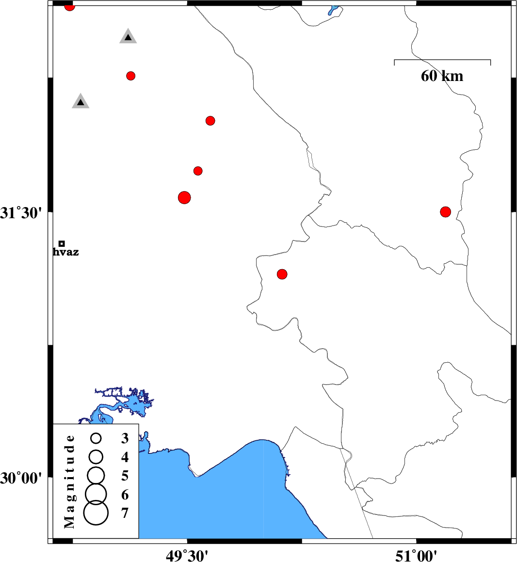 | 2010/08/30 | 18:17:03.6 | 22:47:03.6 | 31.15 | 50.12 | 46 | ML:2.9 | Kohkiluieh va boyerahmad Province, 46 km South-East of Bagh Malek | ||