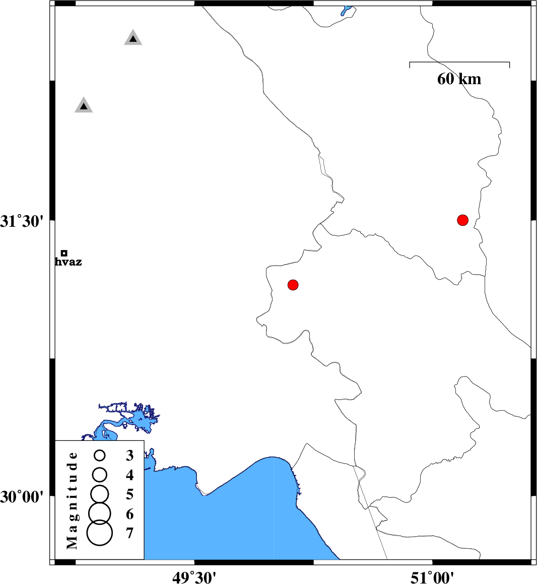 | 2010/08/30 | 18:17:03.6 | 22:47:03.6 | 31.15 | 50.12 | 46 | ML:2.9 | Kohkiluieh va boyerahmad Province, 46 km South-East of Bagh Malek | ||