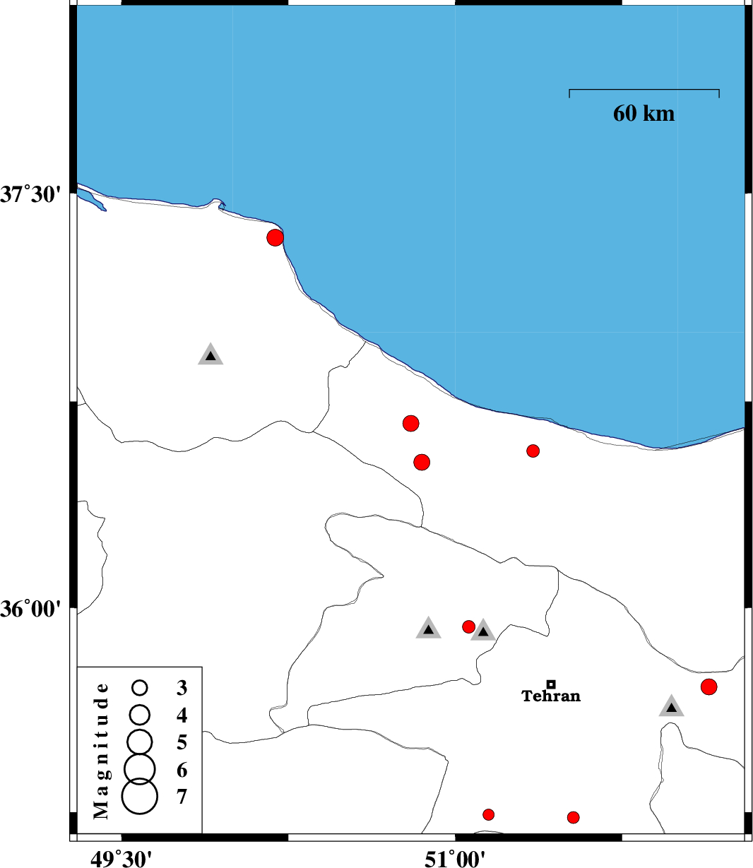 | 2010/08/20 | 03:11:55.8 | 07:41:55.8 | 36.53 | 50.85 | 35 | ML:3.2 | Mazandaran Province, 32 km South of Tonekabon | ||