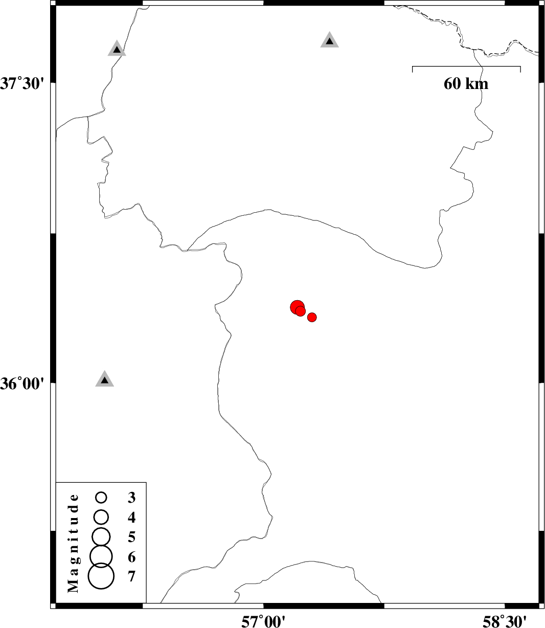 2010/09/01 19:38:05.8 00:08:05.8 36.3657.2323 ML:2.8 Khorasan(center) Province, 43 km North-West of Sabzevar