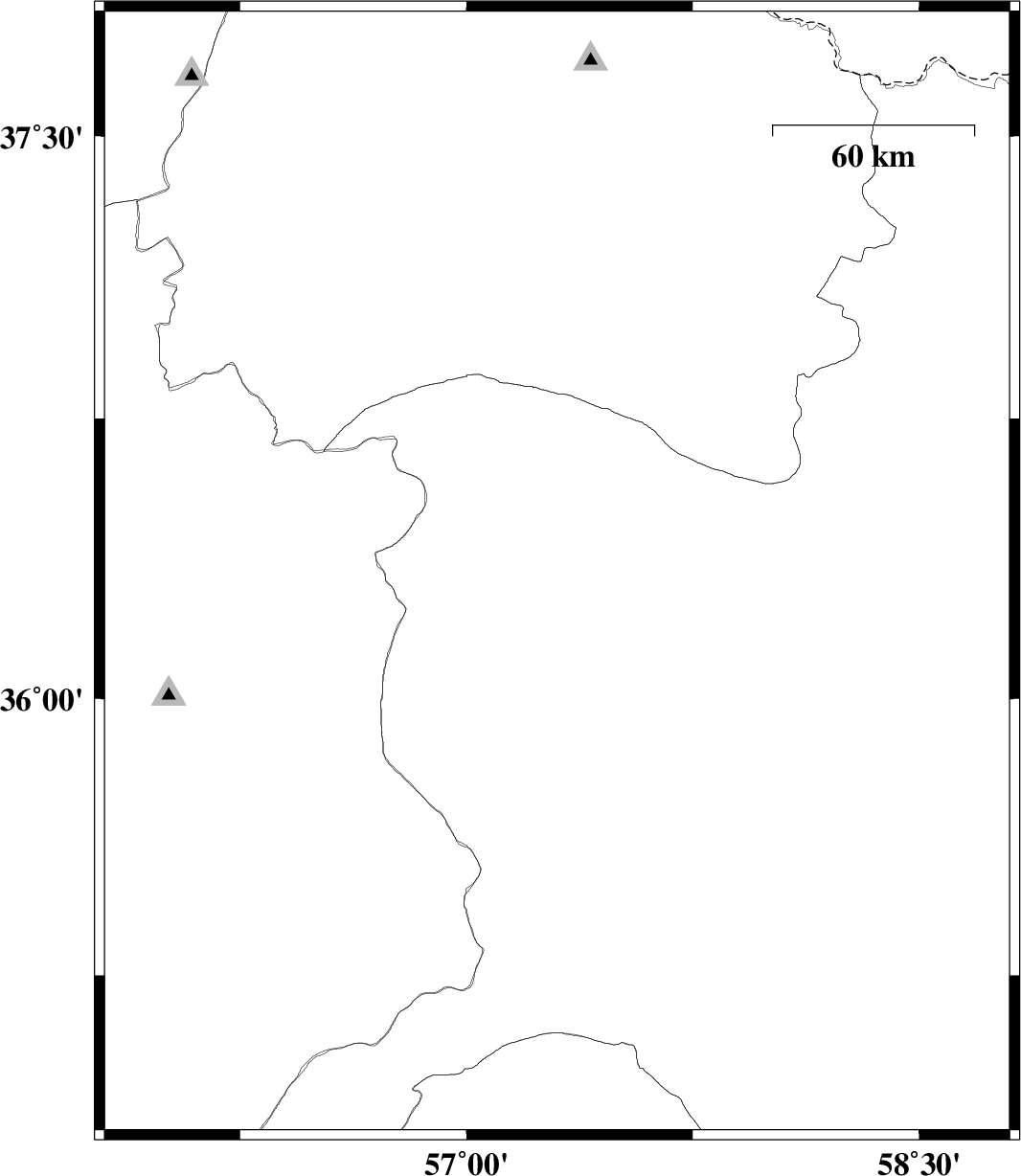 | 2010/08/19 | 08:28:10.5 | 12:58:10.5 | 37.06 | 56.09 | 18 | ML:3.3 | Khorasan(north) Province, 29 km North-West of Jajarm | ||