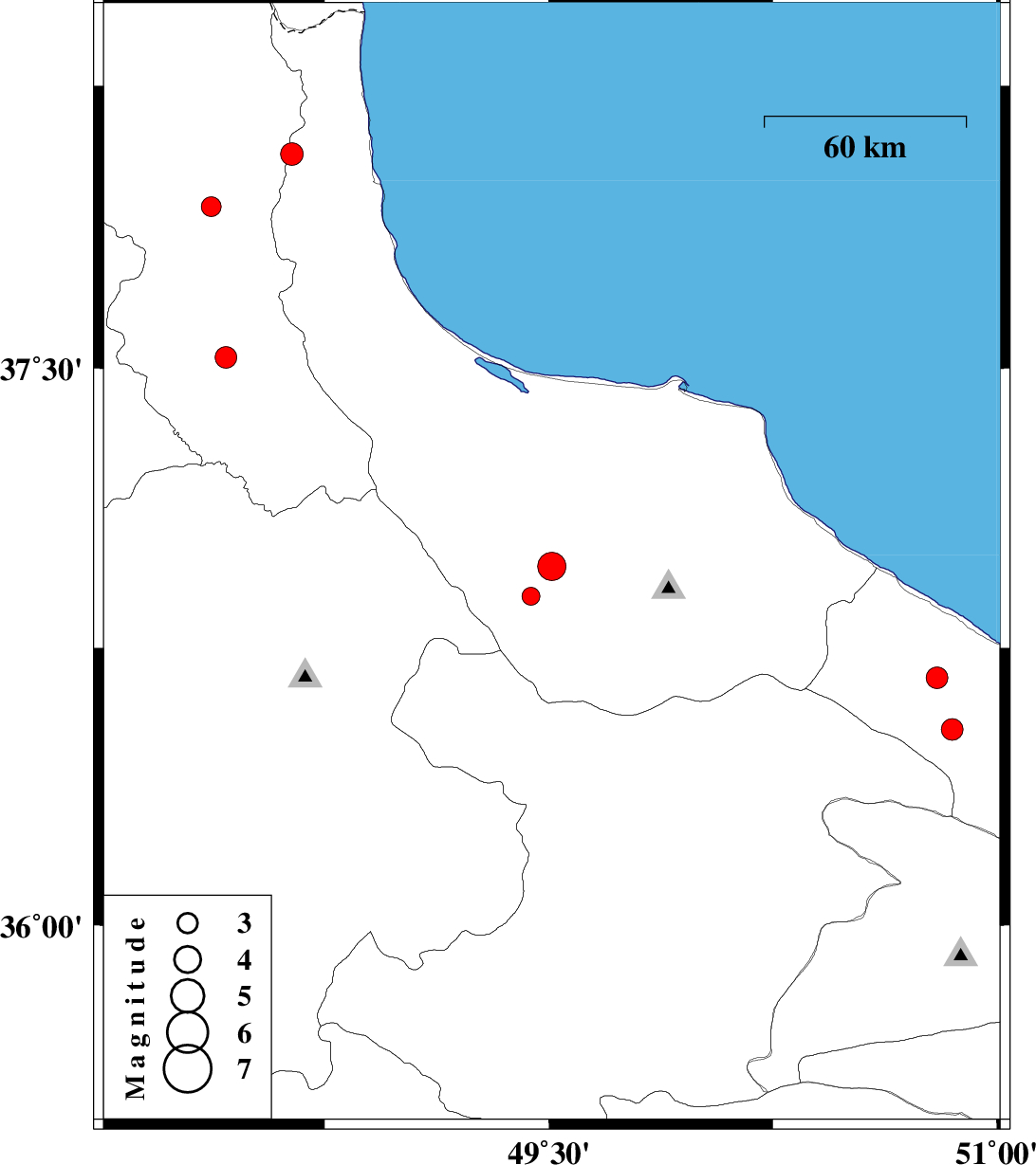 | 2010/09/08 | 05:30:29.8 | 10:00:29.8 | 36.97 | 49.51 | 15 | ML:4.2 | Gilan Province, 17 km North of Rudbar | ||