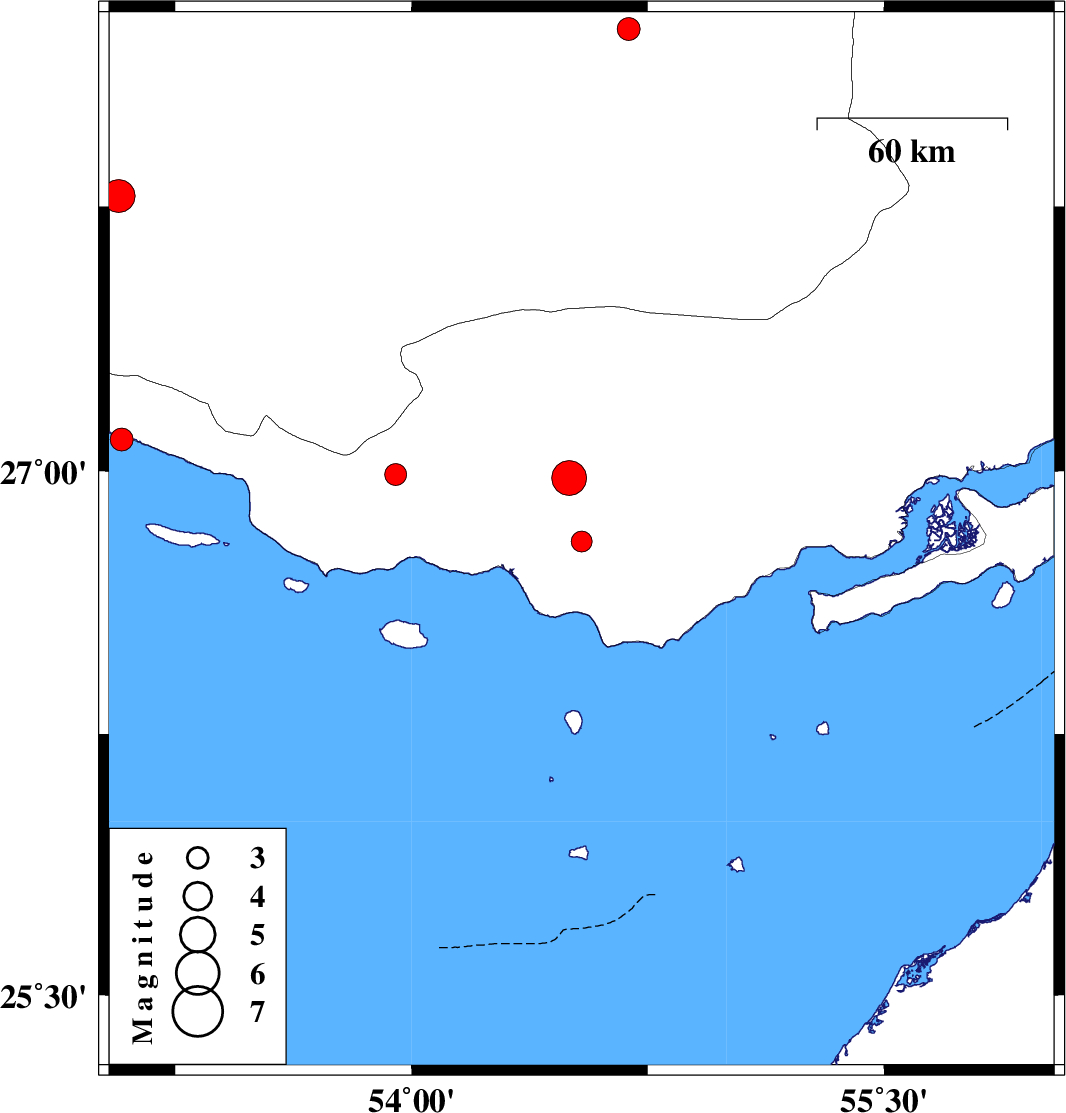| 2010/09/07 | 02:53:45.7 | 07:23:45.7 | 27.09 | 53.08 | 17 | ML:3.2 | Persian Gulf, 28 km South of Lamerd | ||