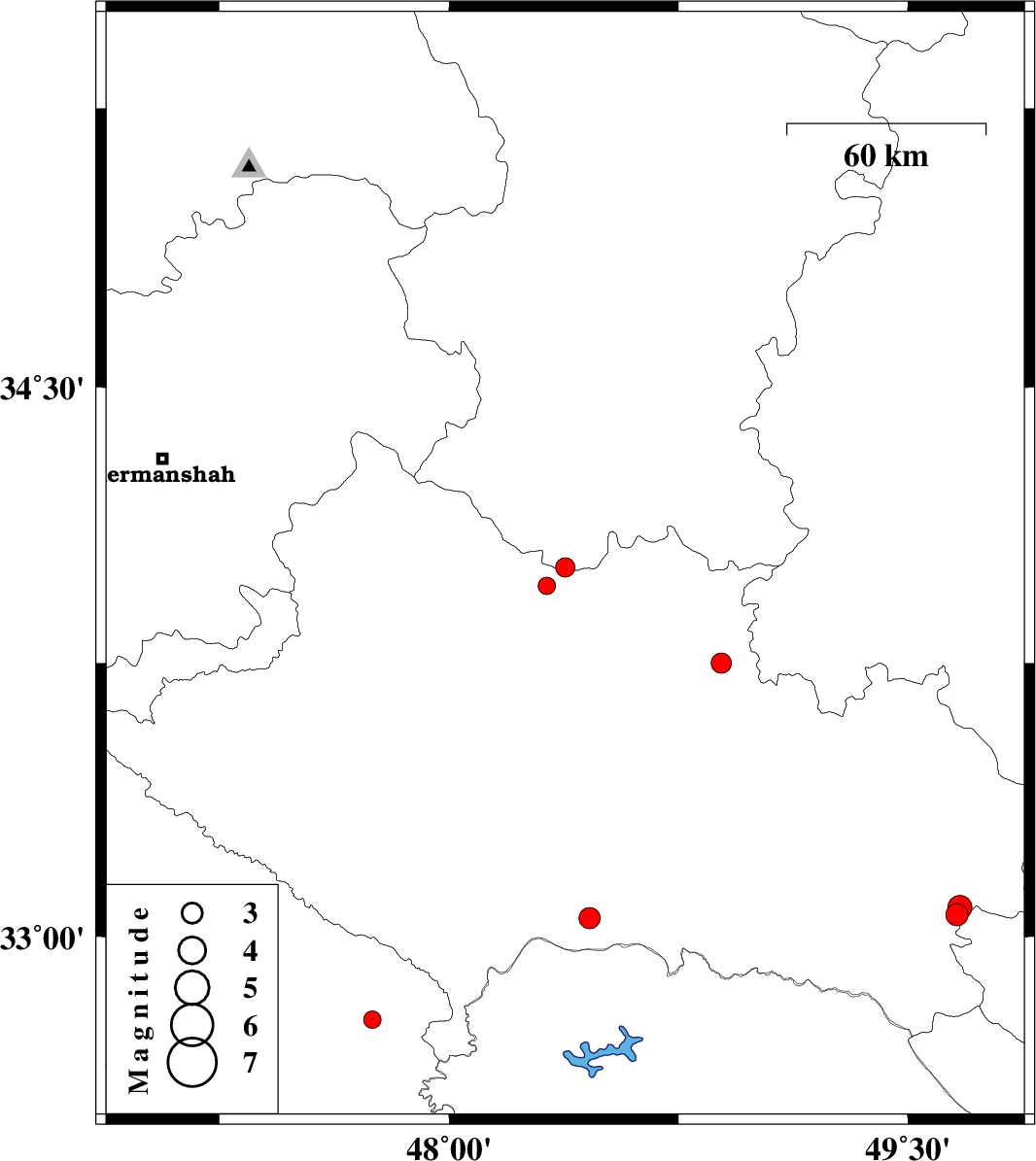 | 2010/09/09 | 02:30:18.5 | 07:00:18.5 | 33.75 | 48.89 | 6 | ML:2.9 | Lorestan Province, 21 km South-East of Borujerd | ||