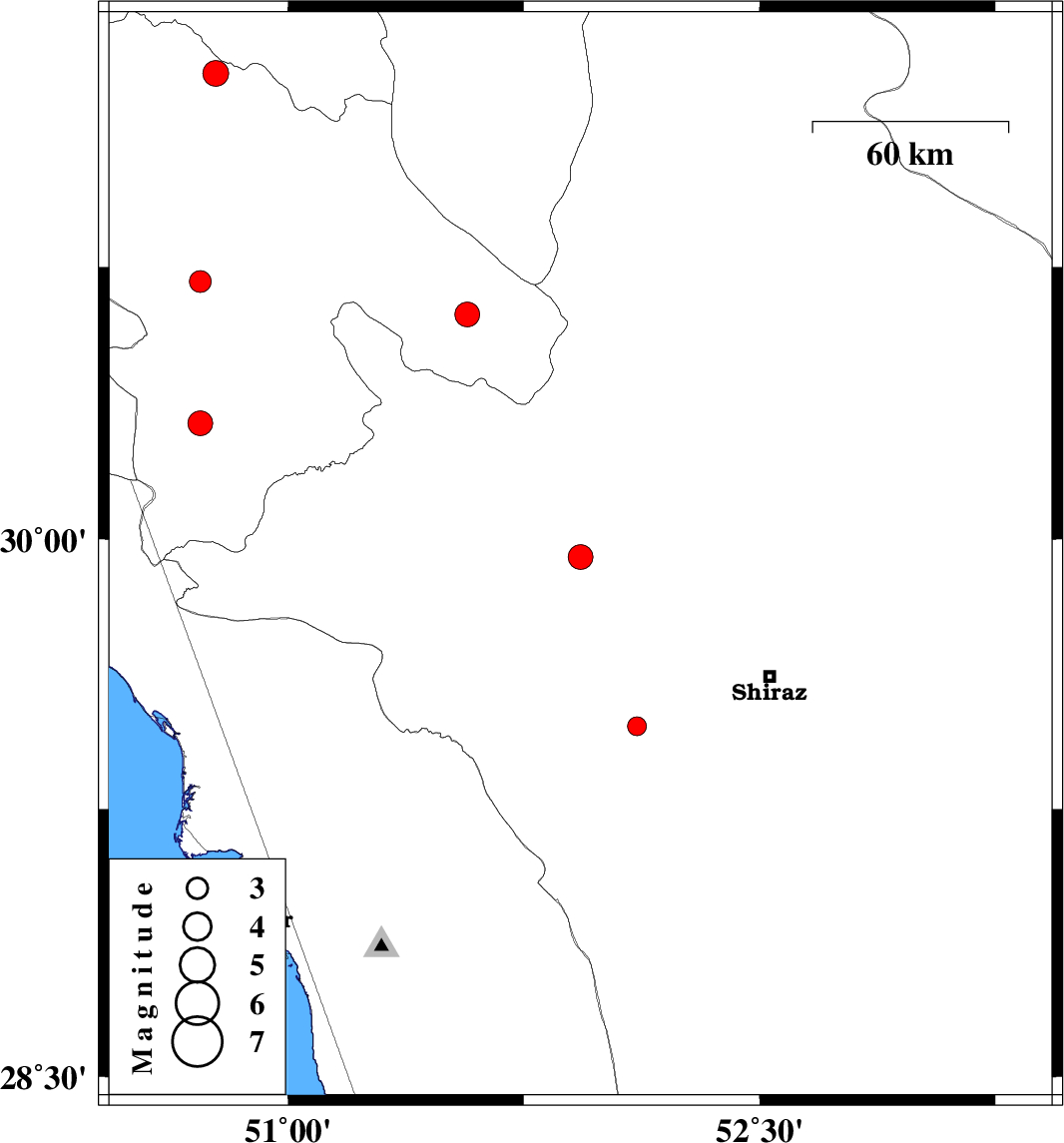 | 2010/09/18 | 07:49:18.1 | 12:19:18.1 | 29.48 | 52.11 | 14 | ML:2.7 | Fars Province, 44 km South-West of Shiraz | ||