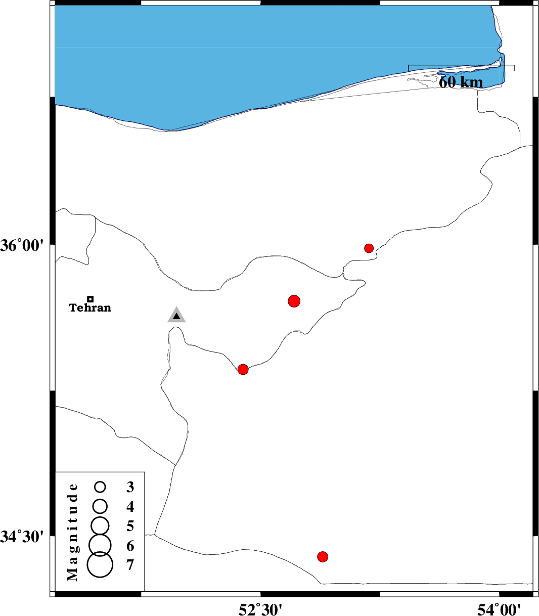 | 2010/09/16 | 15:17:21.7 | 19:47:21.7 | 35.36 | 52.39 | 33 | ML:2.9 | Tehran Province, 17 km North of Garmsar | ||