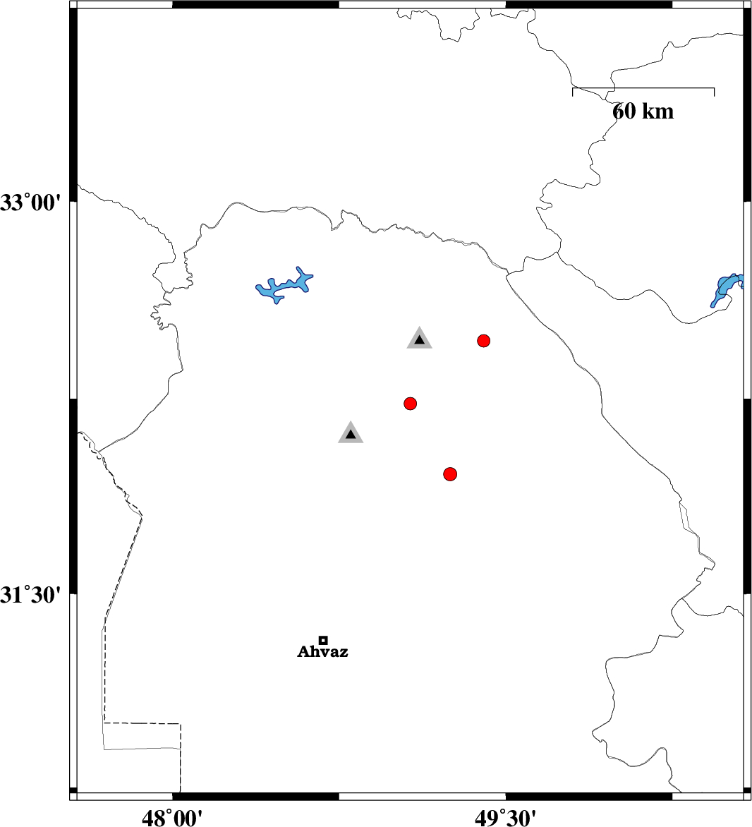 | 2010/09/19 | 11:11:03.6 | 15:41:03.6 | 32.23 | 49.07 | 14 | ML:2.6 | Khoozestan Province, 18 km South of Lali | ||