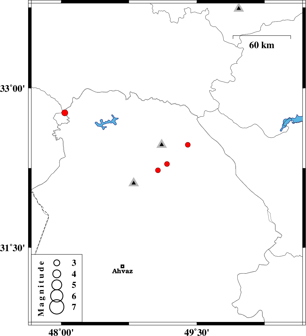 | 2010/09/21 | 23:47:31.3 | 03:17:31.3 | 32.77 | 48.04 | 14 | ML:3.1 | Lorestan Province, 45 km North-West of Andimeshk | ||