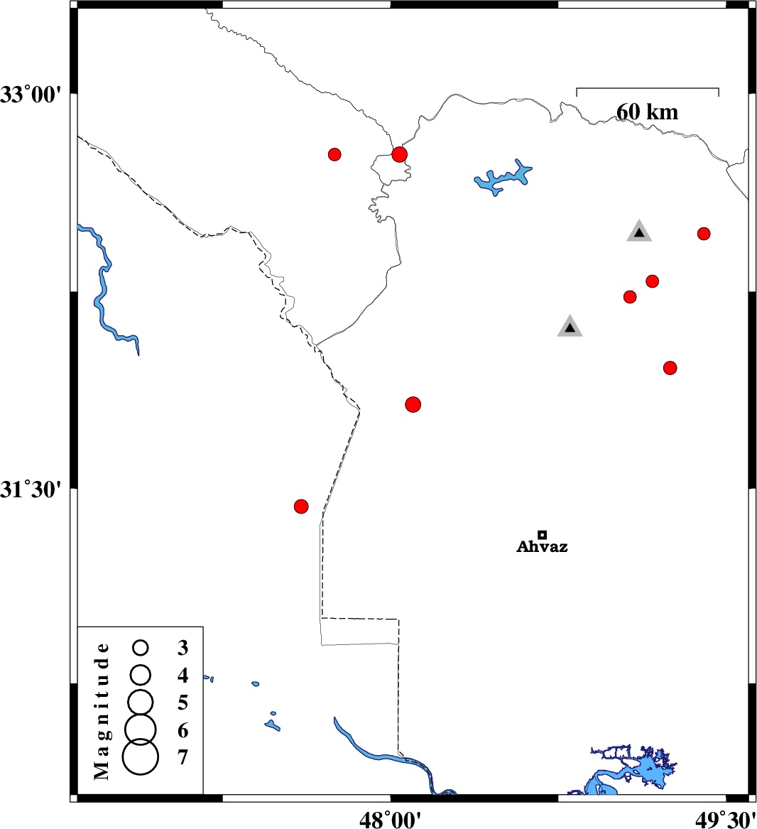 | 2010/09/21 | 09:53:39.6 | 14:23:39.6 | 31.43 | 47.6 | 30 | ML:2.8 | Iraq, 58 km South-West of Susangerd | ||