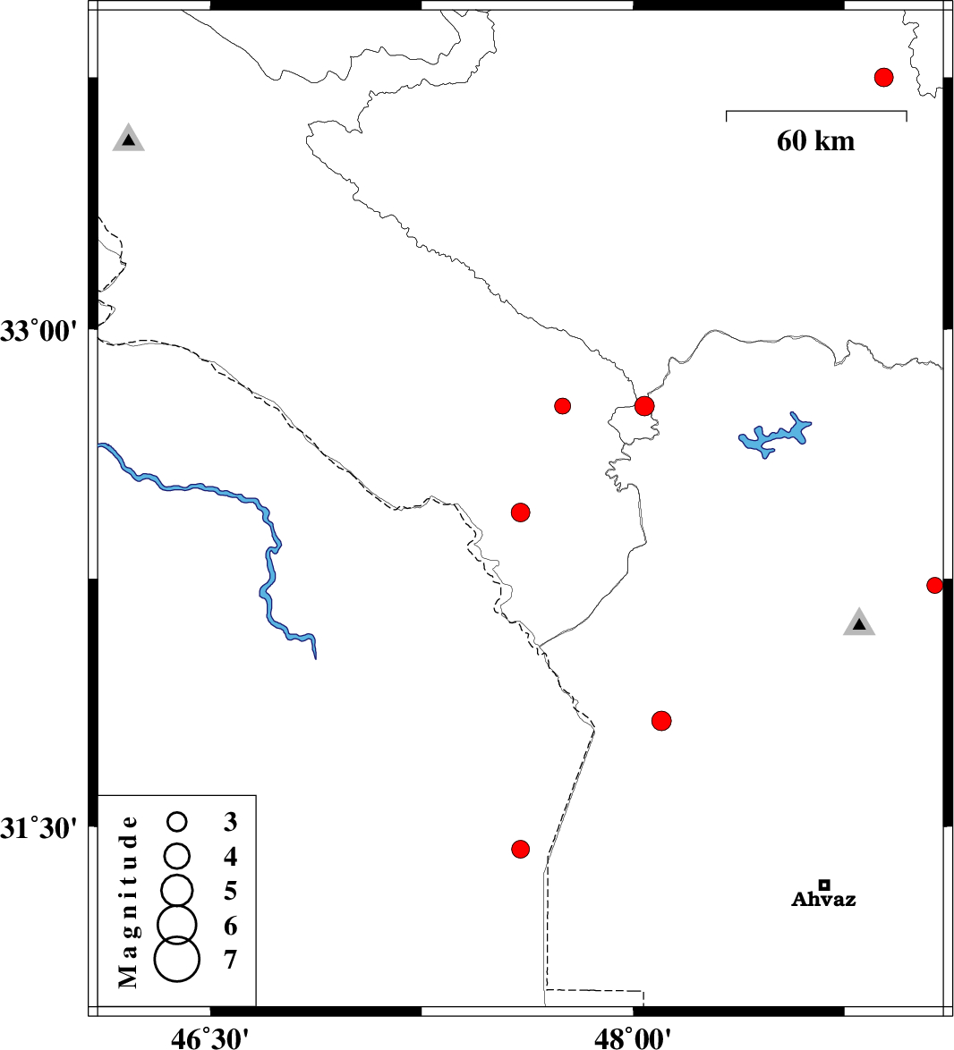 | 2010/09/21 | 09:53:39.6 | 14:23:39.6 | 31.43 | 47.6 | 30 | ML:2.8 | Iraq, 58 km South-West of Susangerd | ||
