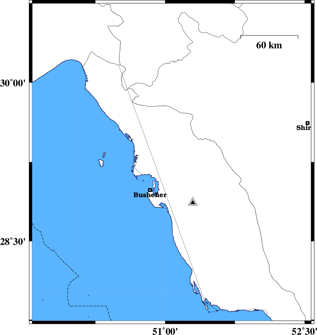 | 2010/10/08 | 18:01:23.0 | 21:31:23.0 | 29.23 | 51.11 | 15 | ML:3 | Bushehr Province, 10 km West of Borazjan | ||