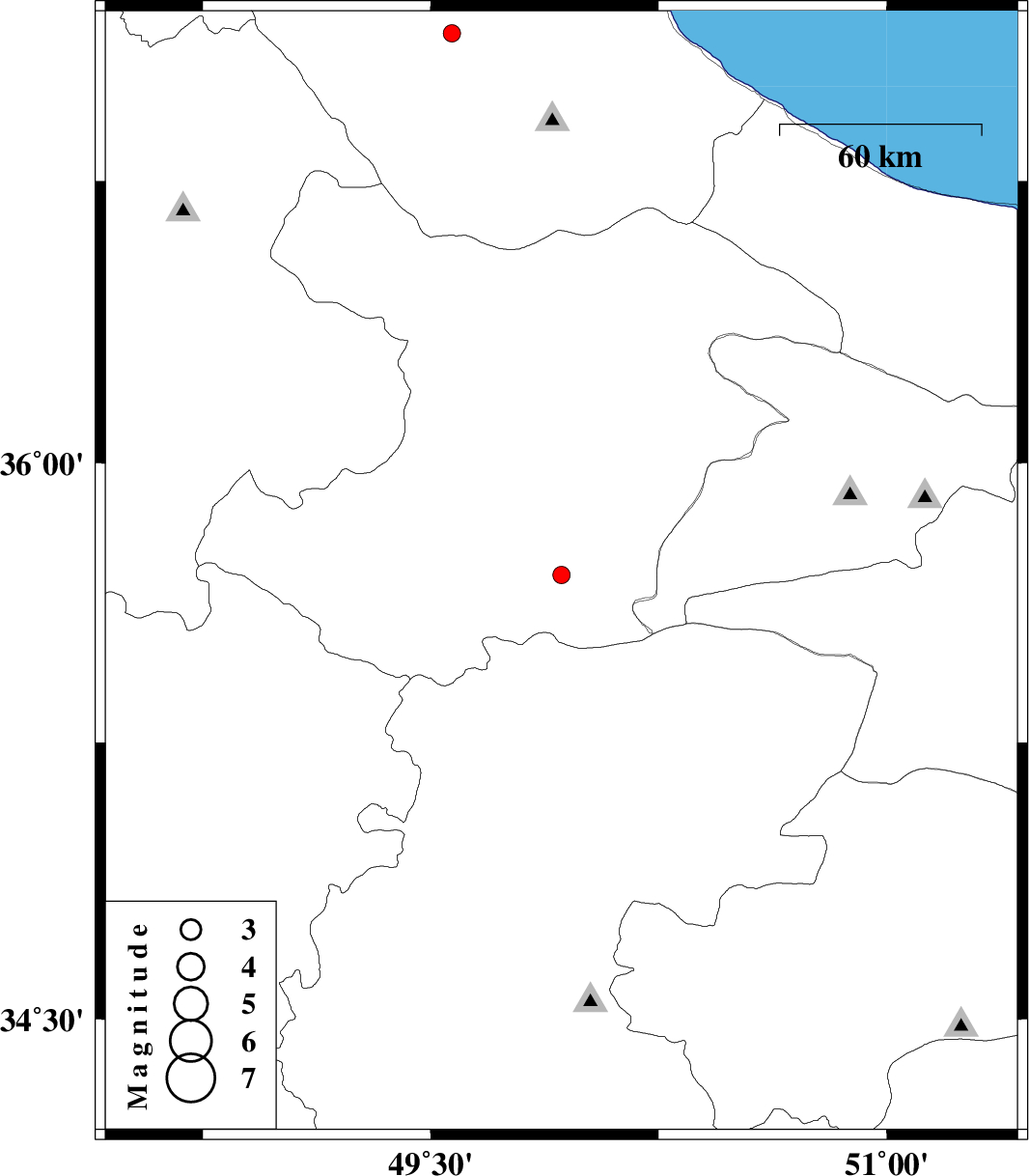 | 2010/09/12 | 07:38:32.6 | 12:08:32.6 | 37.14 | 49.57 | 14 | ML:2.5 | Gilan Province, 15 km South of Rasht |