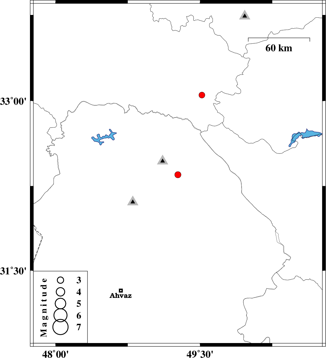 | 2010/10/06 | 07:54:04.1 | 11:24:04.1 | 33.05 | 49.52 | 17 | ML:2.8 | Lorestan Province, 46 km South of Azna |