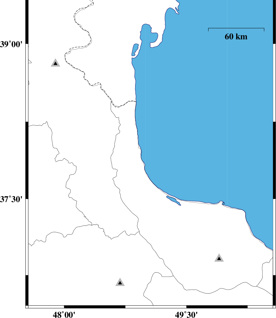 | 2010/10/22 | 09:08:26.4 | 12:38:26.4 | 37.95 | 49.06 | 15 | ML:4.4 | Caspian Sea, 22 km North-East of Hashtpar | ||