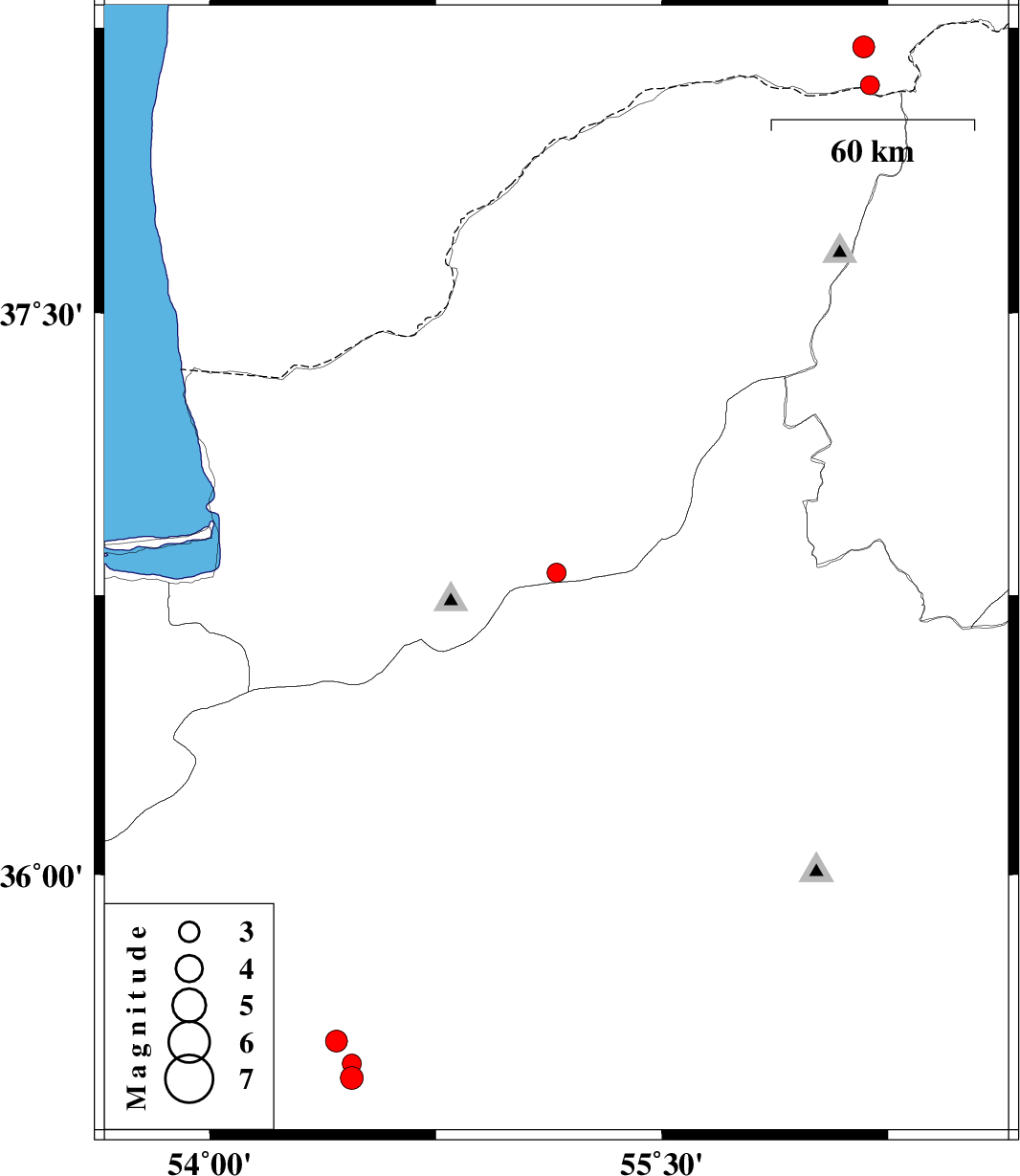 | 2010/10/13 | 13:27:56.9 | 16:57:56.9 | 35.45 | 54.47 | 14 | ML:3.4 | Semnan Province, 81 km South-East of Damghan | ||