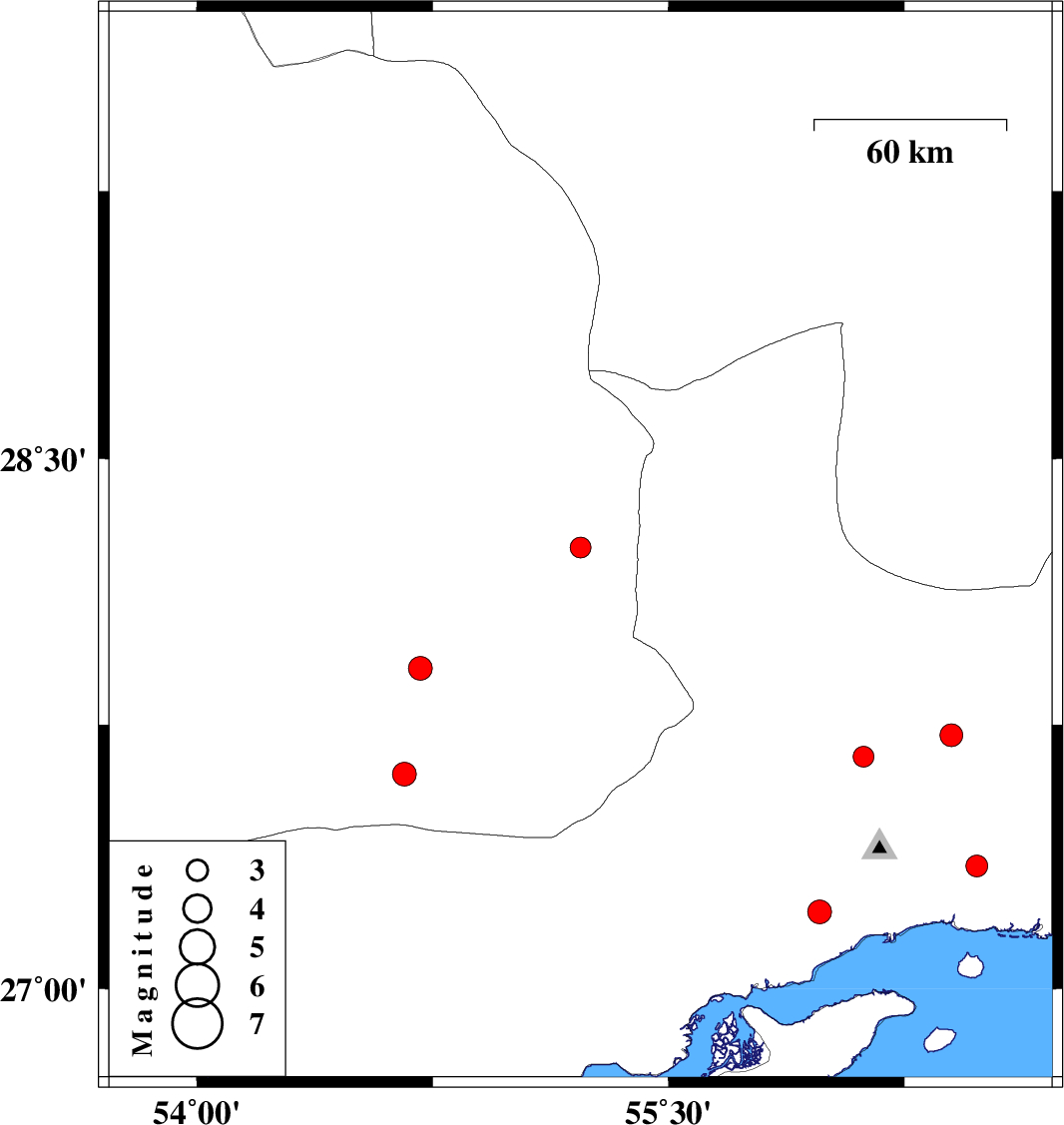 | 2010/10/28 | 13:56:11.7 | 17:26:11.7 | 27.22 | 55.98 | 7 | ML:3.4 | Hormozgan Province, 30 km West of Bandar-e abbas | ||