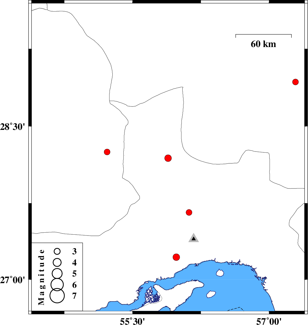 | 2010/10/28 | 13:56:11.7 | 17:26:11.7 | 27.22 | 55.98 | 7 | ML:3.4 | Hormozgan Province, 30 km West of Bandar-e abbas | ||