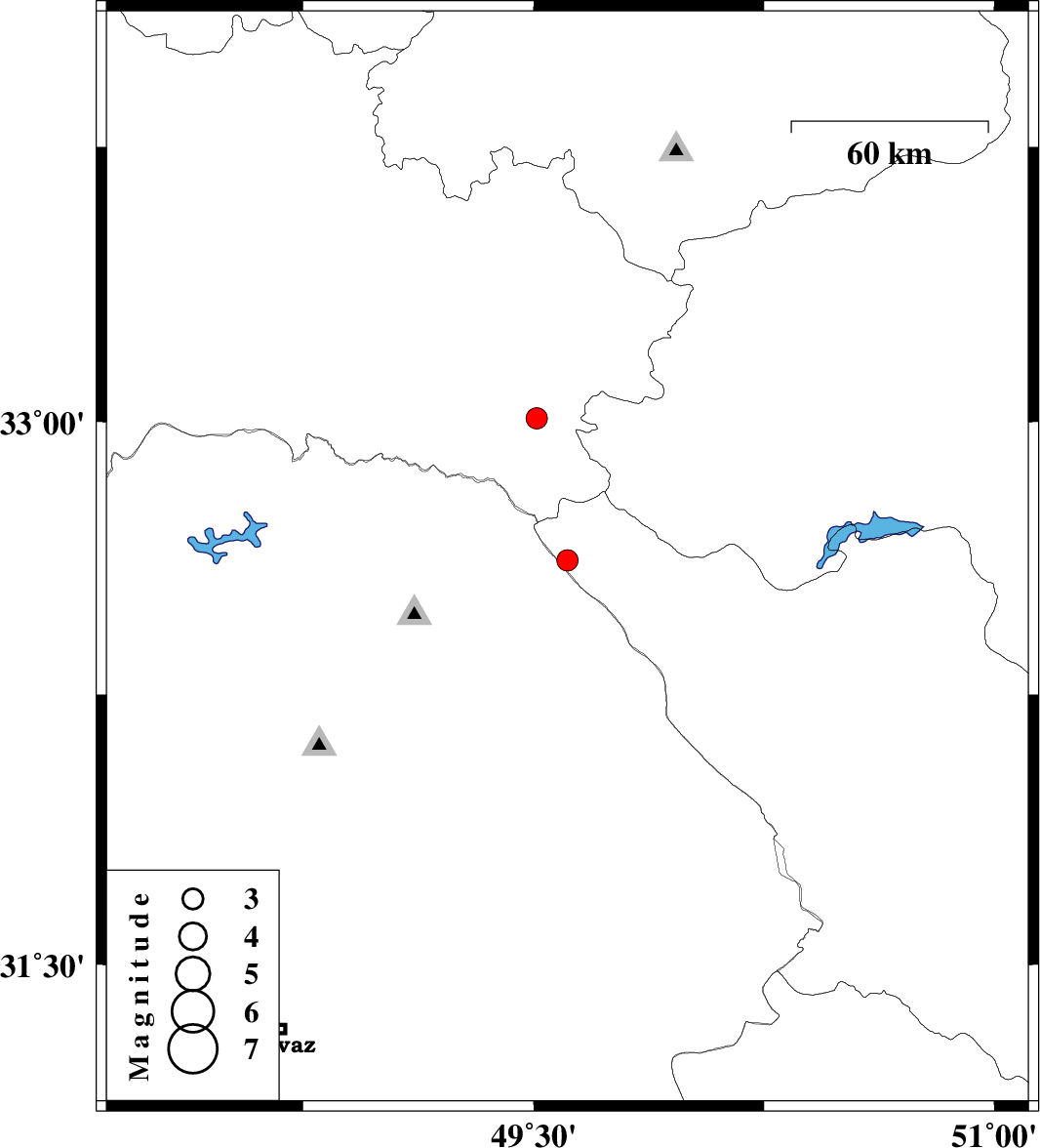 | 2010/10/26 | 03:35:07.1 | 07:05:07.1 | 33.01 | 49.51 | 15 | ML:3.1 | Lorestan Province, 49 km South of Azna |