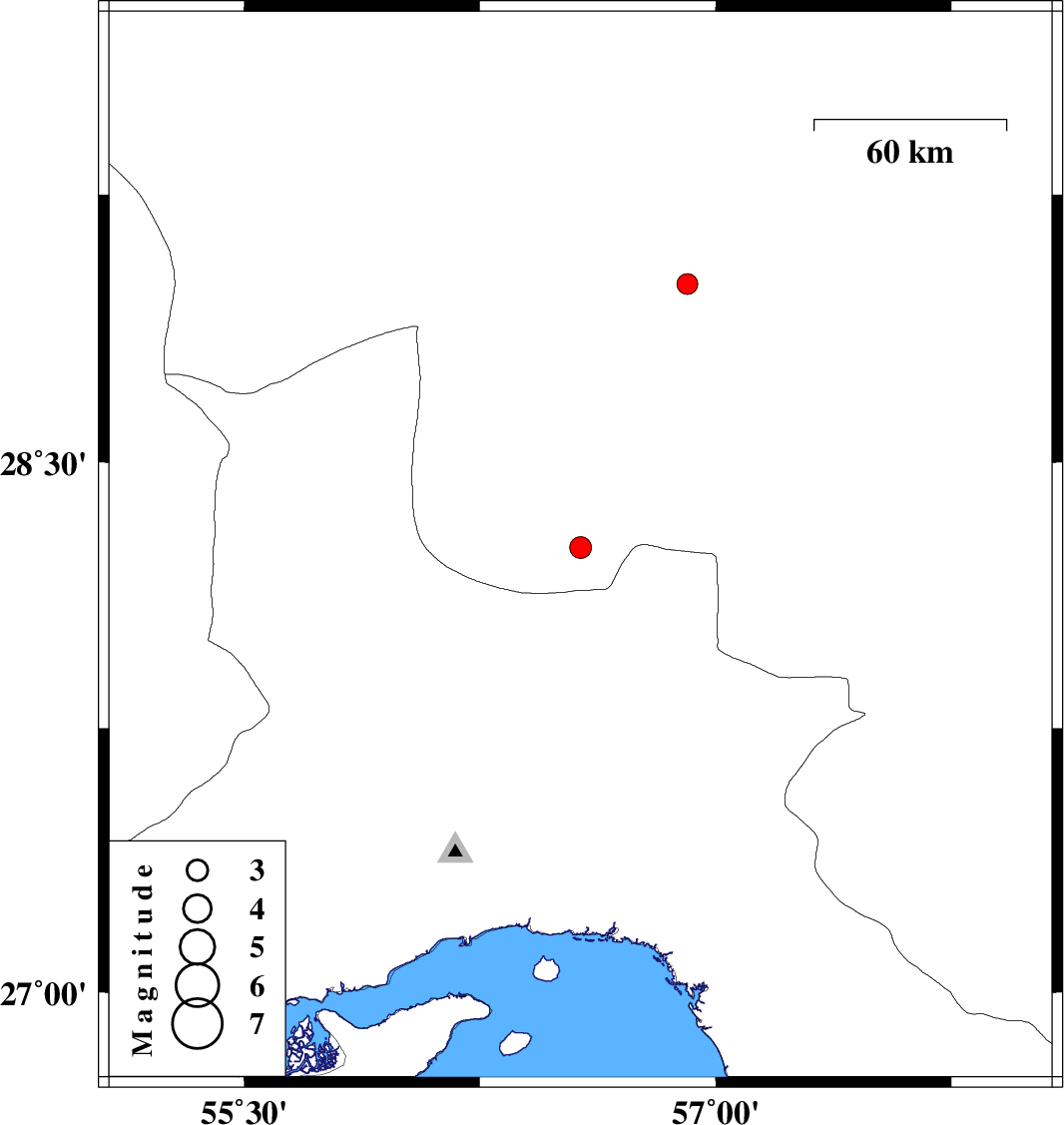 | 2010/11/08 | 11:14:57.4 | 14:44:57.4 | 28.26 | 56.57 | 14 | ML:3.1 | Kerman Province, 65 km East of Hajiabad | ||