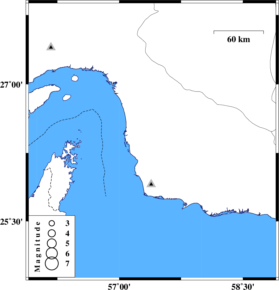 | 2010/11/14 | 14:49:29.7 | 18:19:29.7 | 26.38 | 57.4 | 18 | ML:4 | Hormozgan Province, 92 km South-East of Minab |