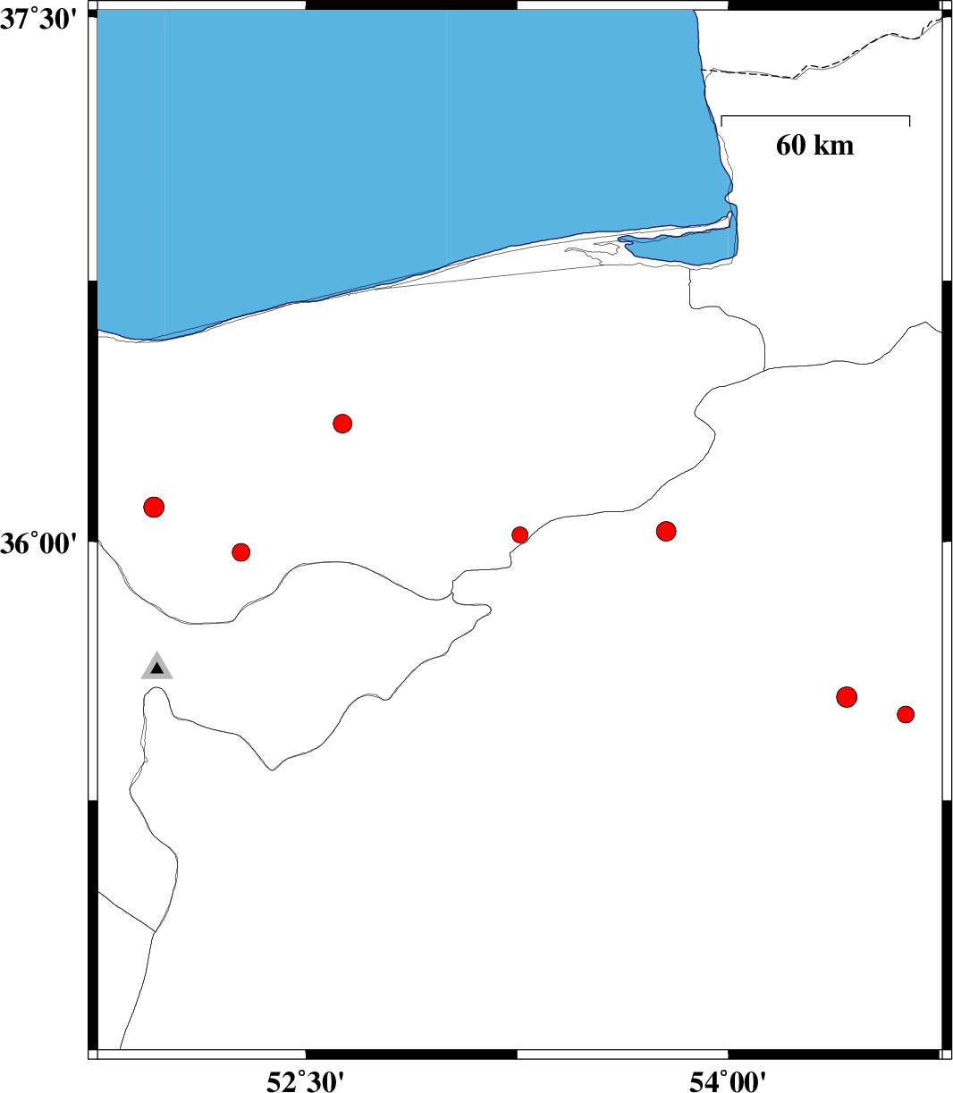 | 2010/11/14 | 20:12:15.2 | 23:42:15.2 | 35.97 | 52.27 | 6 | ML:2.8 | Mazandaran Province, 34 km North-East of Damavand | ||