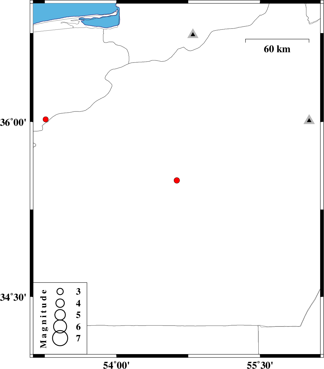 | 2010/11/15 | 04:57:12.1 | 08:27:12.1 | 36.02 | 53.26 | 14 | ML:2.6 | Mazandaran Province, 21 km East of Pol-E-Sefid |