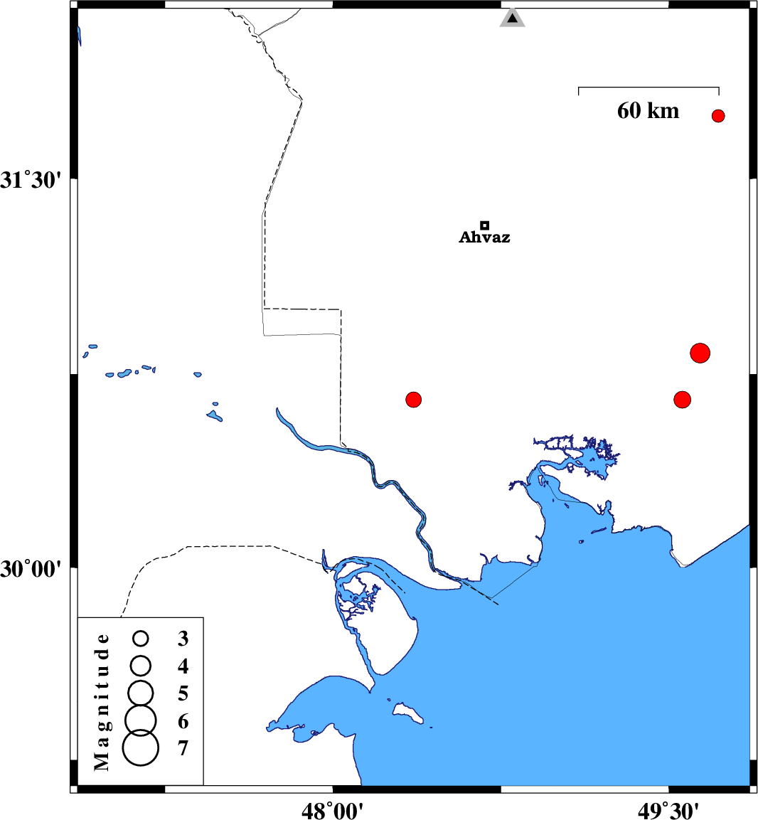 | 2010/10/19 | 04:05:15.7 | 07:35:15.7 | 30.65 | 49.56 | 32 | ML:3.4 | Khoozestan Province, 19 km South-West of Omidiyeh |