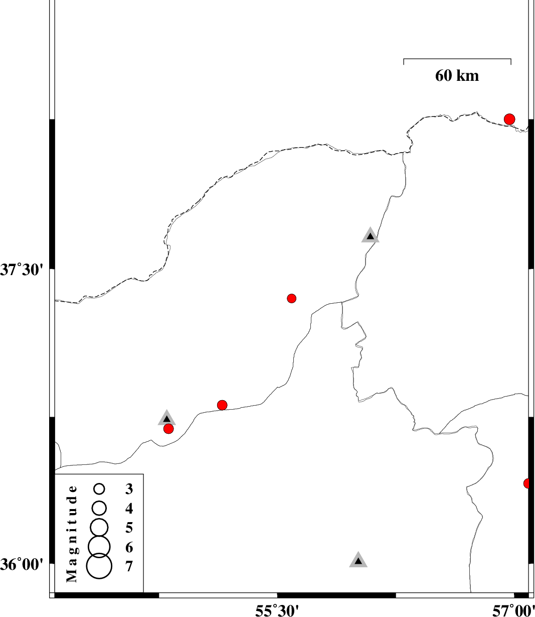 | 2010/11/20 | 03:55:45.8 | 07:25:45.8 | 37.35 | 55.59 | 15 | ML:2.6 | Golestan Province, 9 km Kalaleh | ||