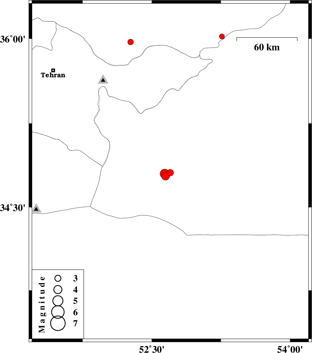 | 2010/11/14 | 20:12:15.2 | 23:42:15.2 | 35.97 | 52.27 | 6 | ML:2.8 | Mazandaran Province, 34 km North-East of Damavand |